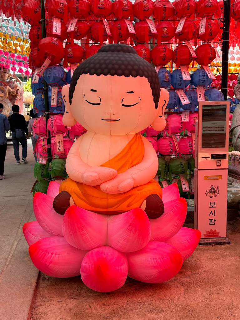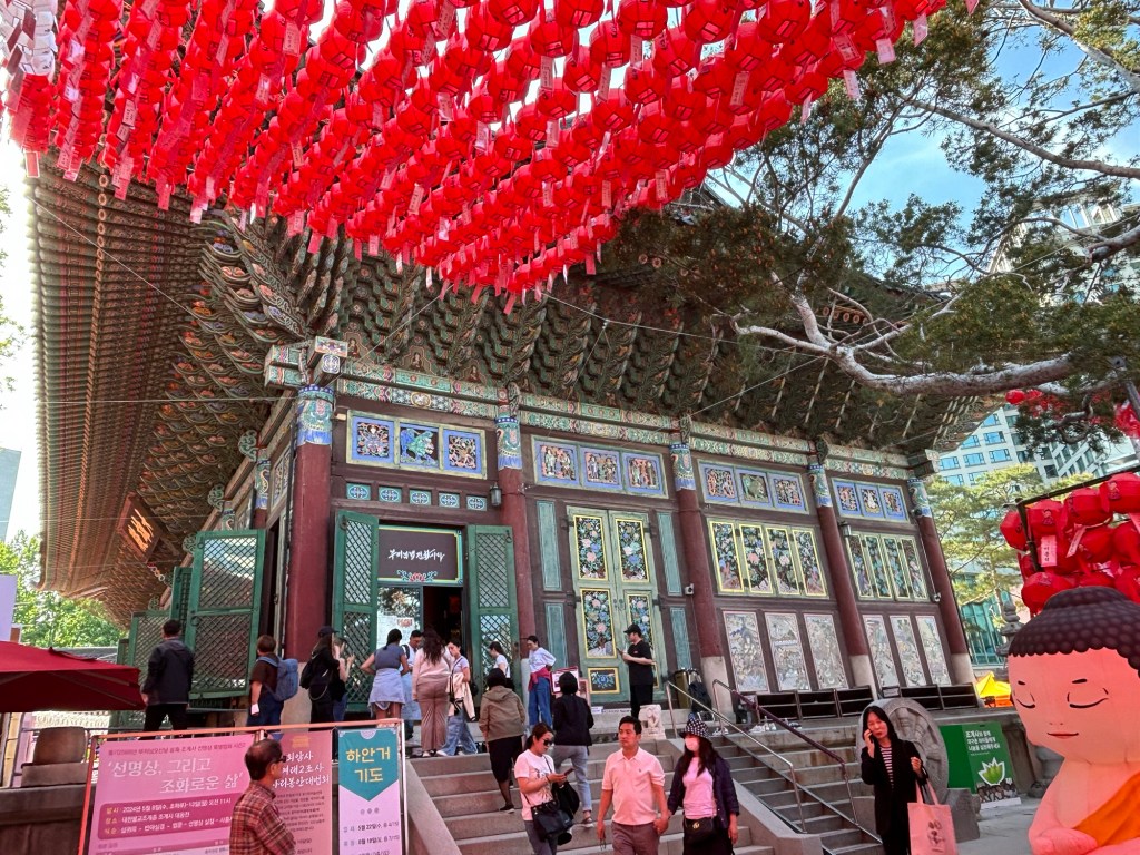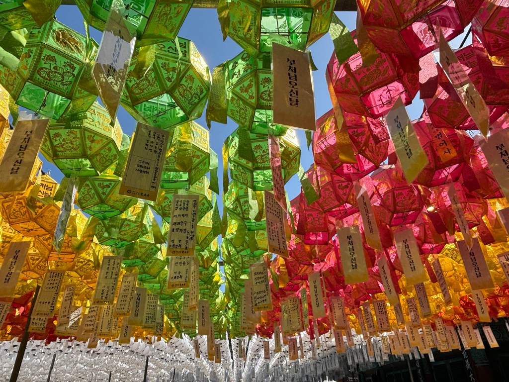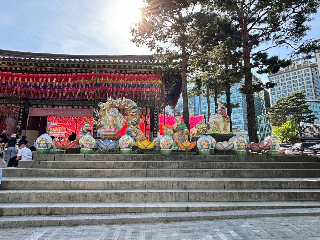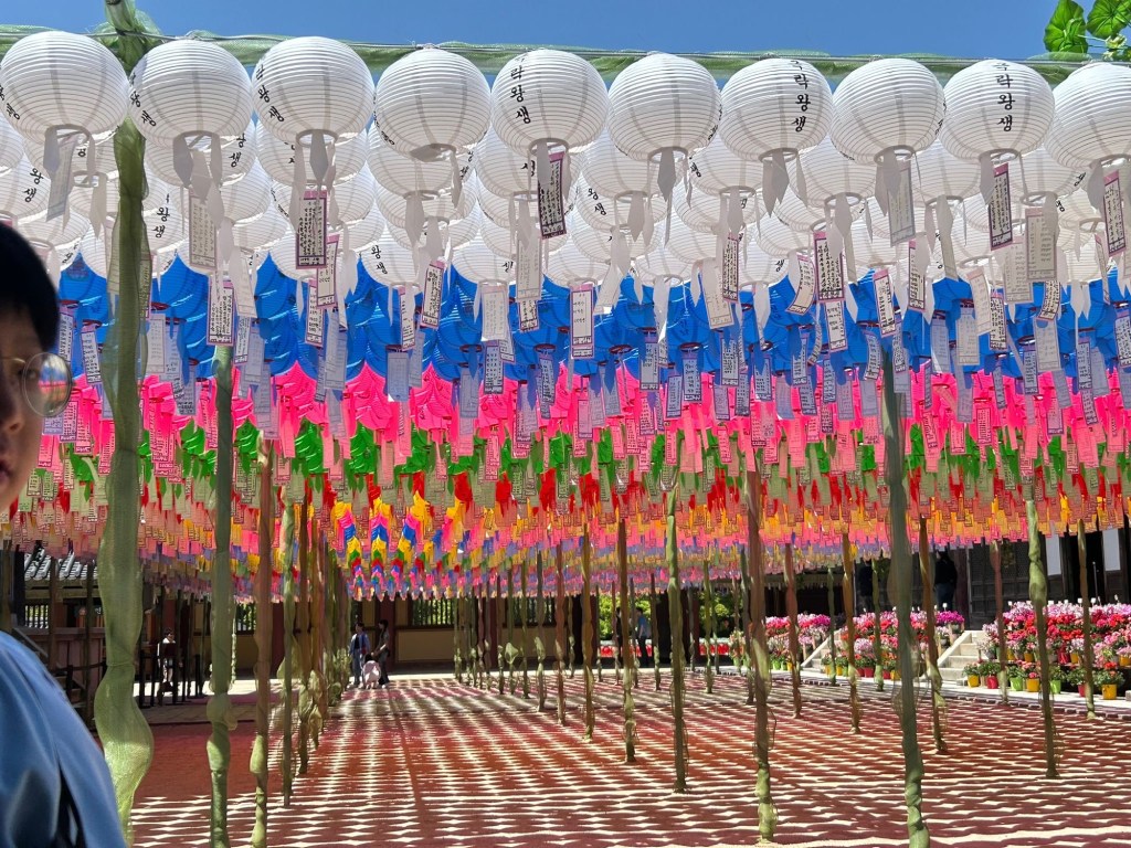 Am Tag vor dem Lichterfest für Buddhas Geburtstag waren wir im Jogyesa Tempel direkt um die Ecke unseres Hotels in Insadong. Man hat dort wie überall bereits für den Hauptevent, das Lichterfest dekorieret. Vor lauter Laternen haben wir erst den Tempel nicht gefunden. 😂 Alle Hauptaktivitäten in Seoul zu Buddhas Geburtstag finden hier um den Tempel in Insadong statt. Auch die 2,5 Stunden lange Lichterparade endet am Tempel. Am Sonntag werden auf der Straße zum Tempel zahlreiche kostenfreie Aktivitäten angeboten.