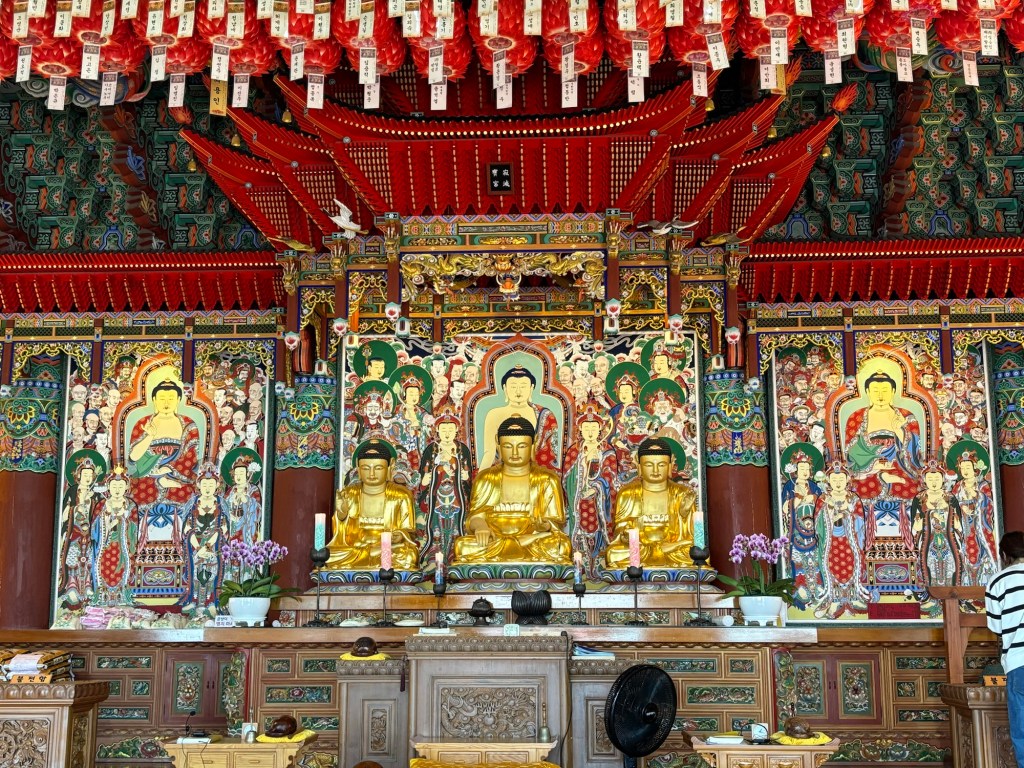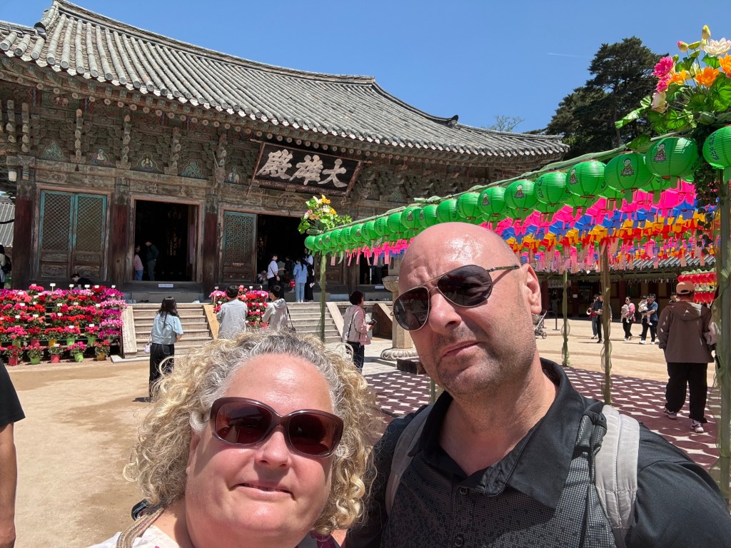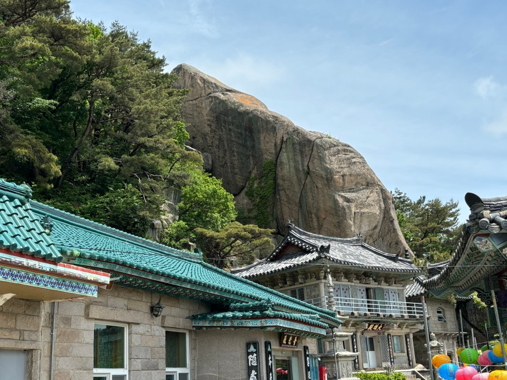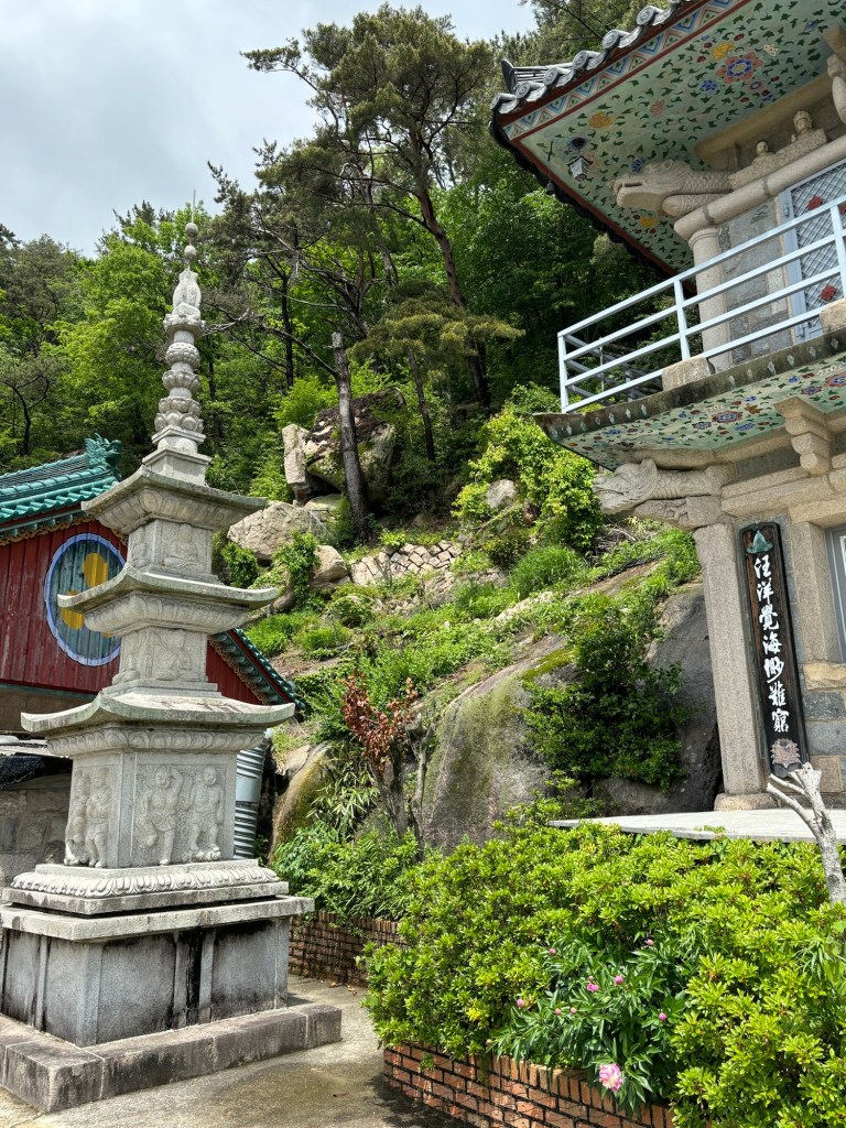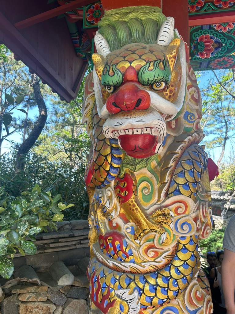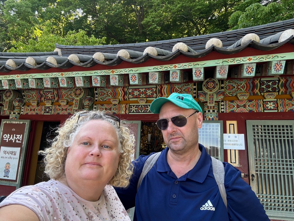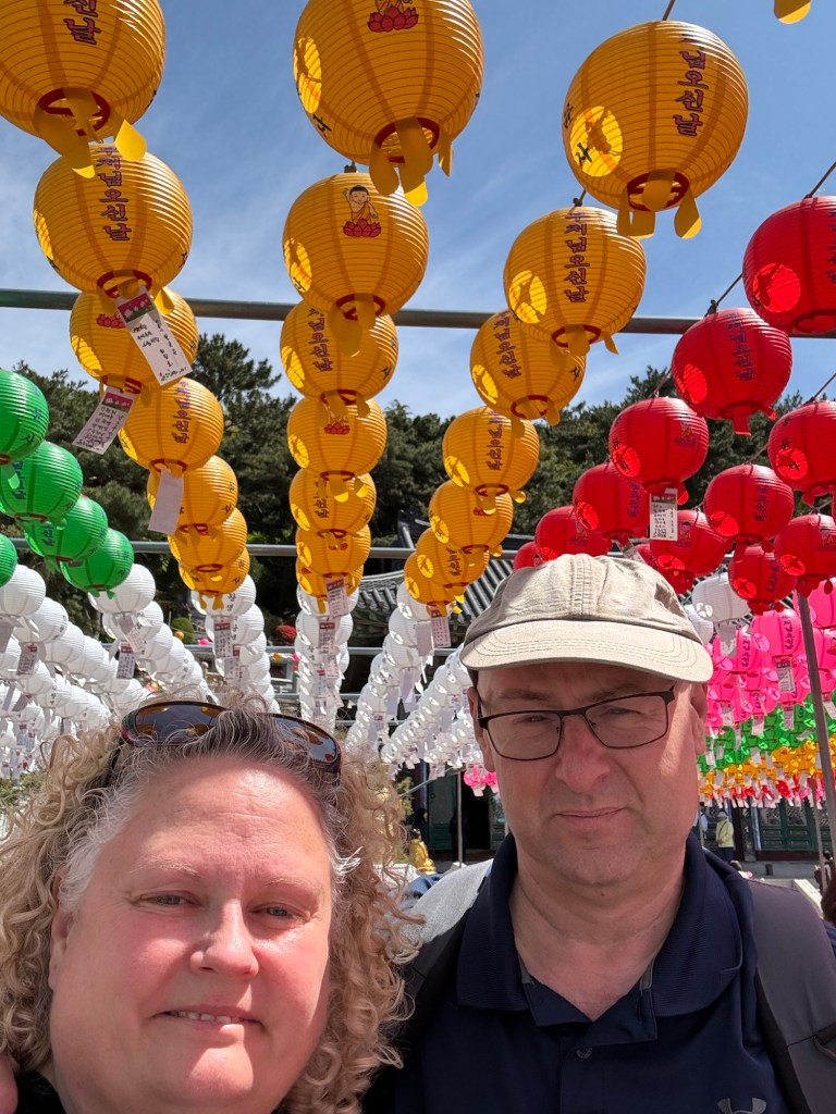 Gestern hat es ziemlich geregnet, deshalb haben wir den Tag für ein paar administrative Dinge genutzt, wie Bus und Bahntickets buchen und einen Besuch in einer Shopping Mall. Heute war das Wetter wieder schön und wir haben den Seokbulsa Tempel in den Bergen von Busan besucht. Es ist etwas schwierig den Tempel zu erreichen, da sollte eine Gondel hochfahren, aber die haben wir nicht gefunden. Also sind wir so weit wie möglich mit einem Taxi hochgefahren und den Rest gelaufen. Es war ziemlich steil, rutschig und nass, was ein kleines Problem für meinen Fuß war, aber wir waren vorsichtig und sehr langsam. Der Tempel ist wunderschön und ich bin froh, dass wir heute noch die Chance hatten ihn zu besuchen. Er ist teilweise in Stein gemeißelt und gebaut. Wunderschön!