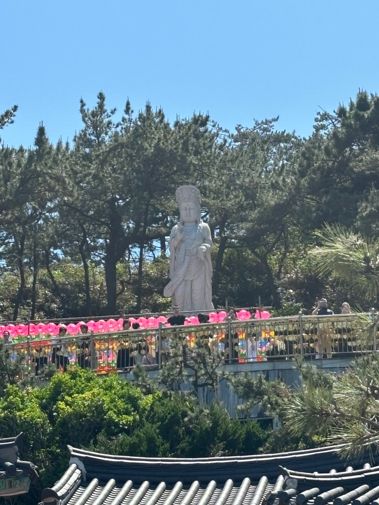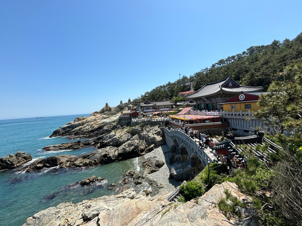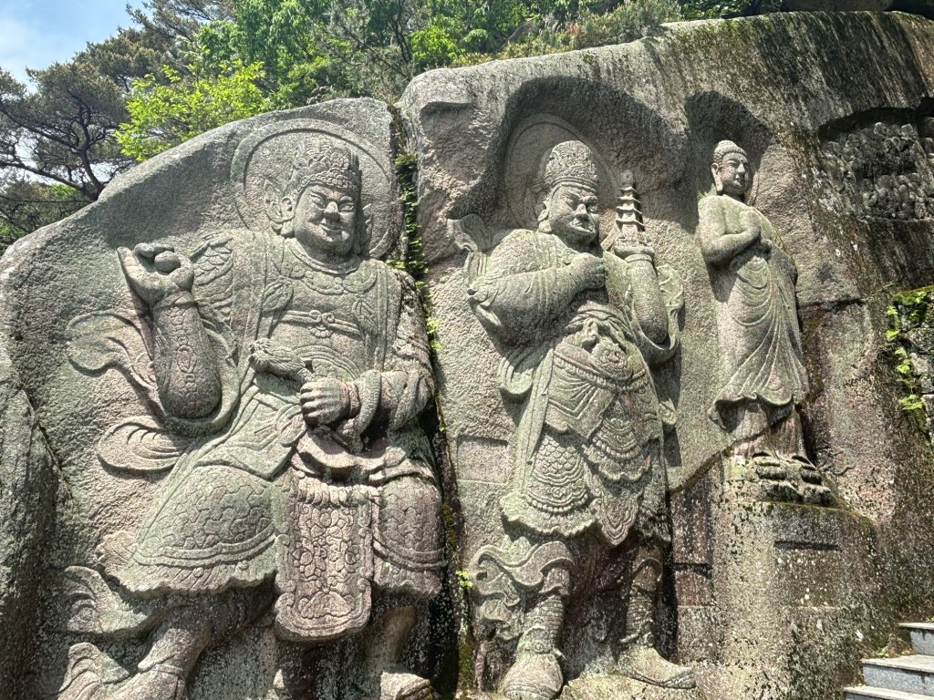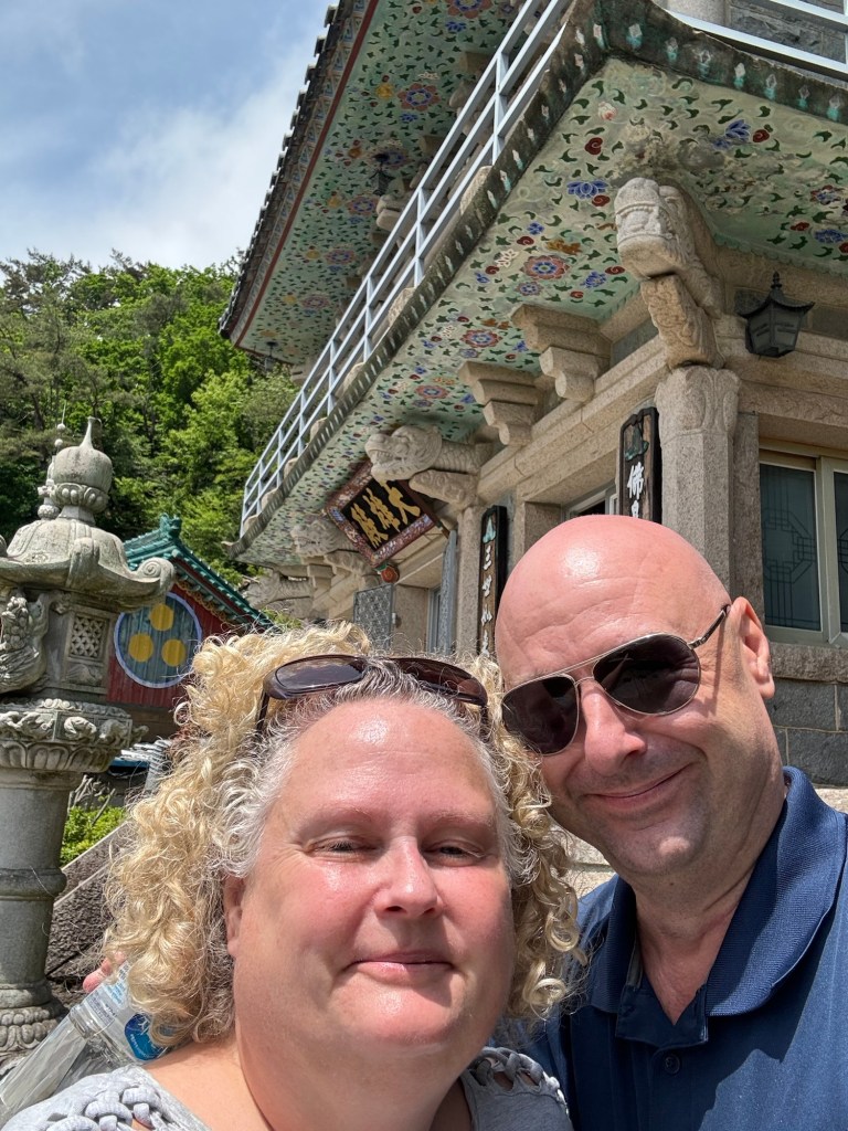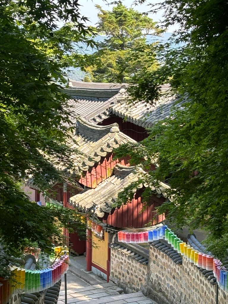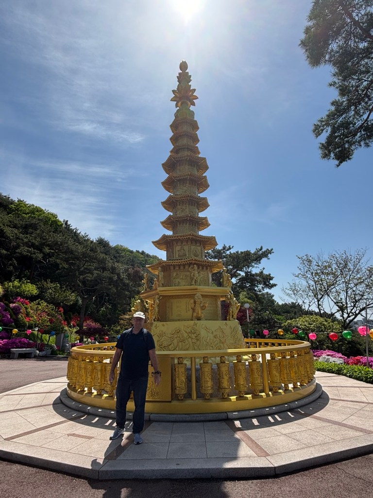 Gestern hat es ziemlich geregnet, deshalb haben wir den Tag für ein paar administrative Dinge genutzt, wie Bus und Bahntickets buchen und einen Besuch in einer Shopping Mall. Heute war das Wetter wieder schön und wir haben den Seokbulsa Tempel in den Bergen von Busan besucht. Es ist etwas schwierig den Tempel zu erreichen, da sollte eine Gondel hochfahren, aber die haben wir nicht gefunden. Also sind wir so weit wie möglich mit einem Taxi hochgefahren und den Rest gelaufen. Es war ziemlich steil, rutschig und nass, was ein kleines Problem für meinen Fuß war, aber wir waren vorsichtig und sehr langsam. Der Tempel ist wunderschön und ich bin froh, dass wir heute noch die Chance hatten ihn zu besuchen. Er ist teilweise in Stein gemeißelt und gebaut. Wunderschön!