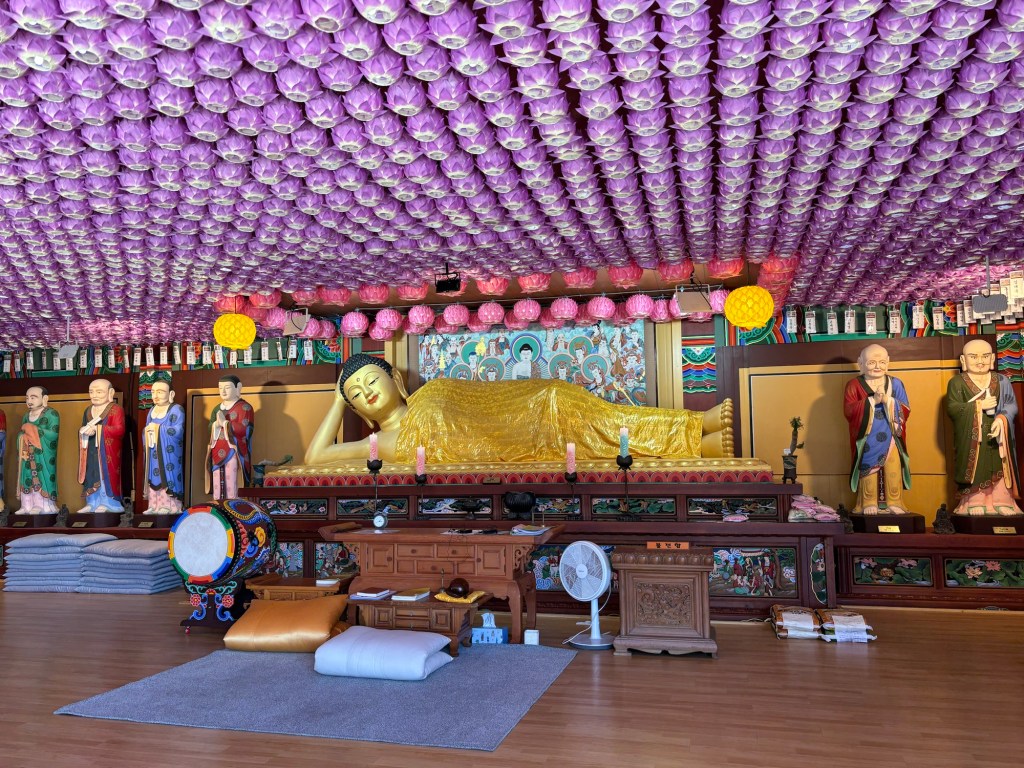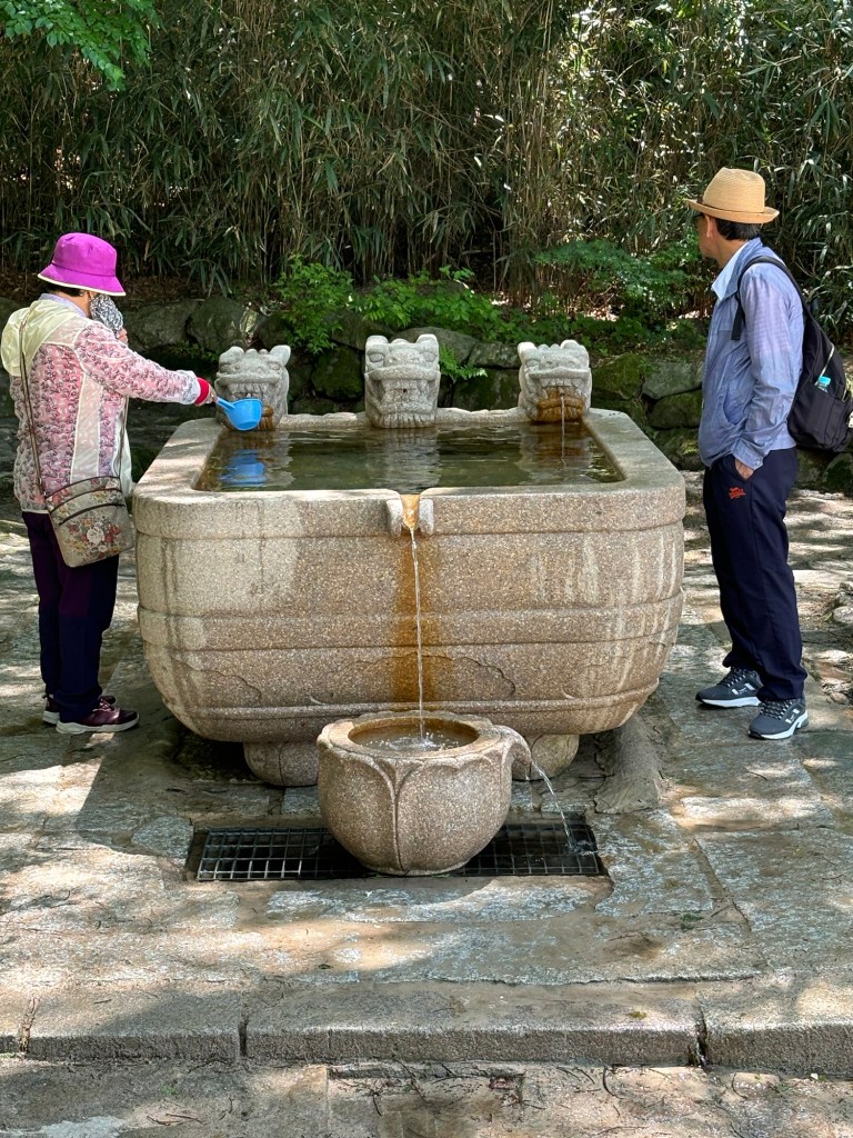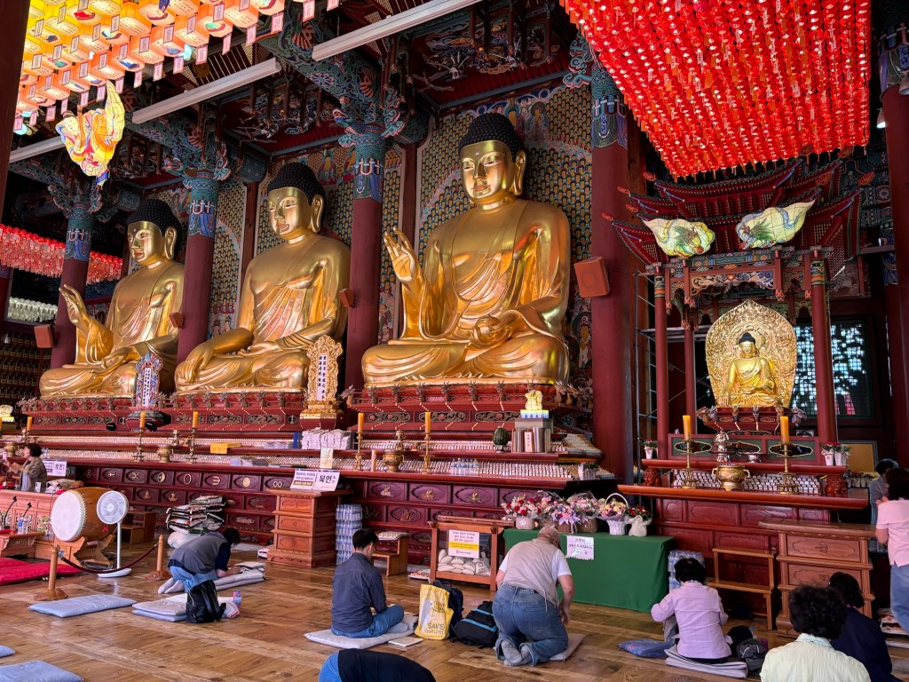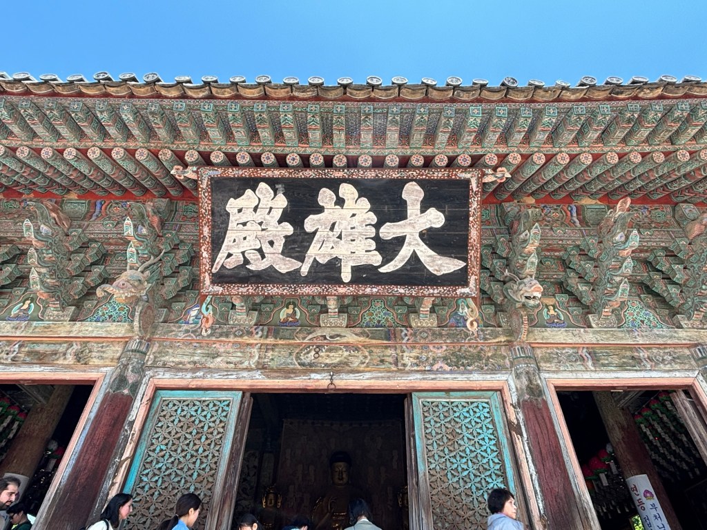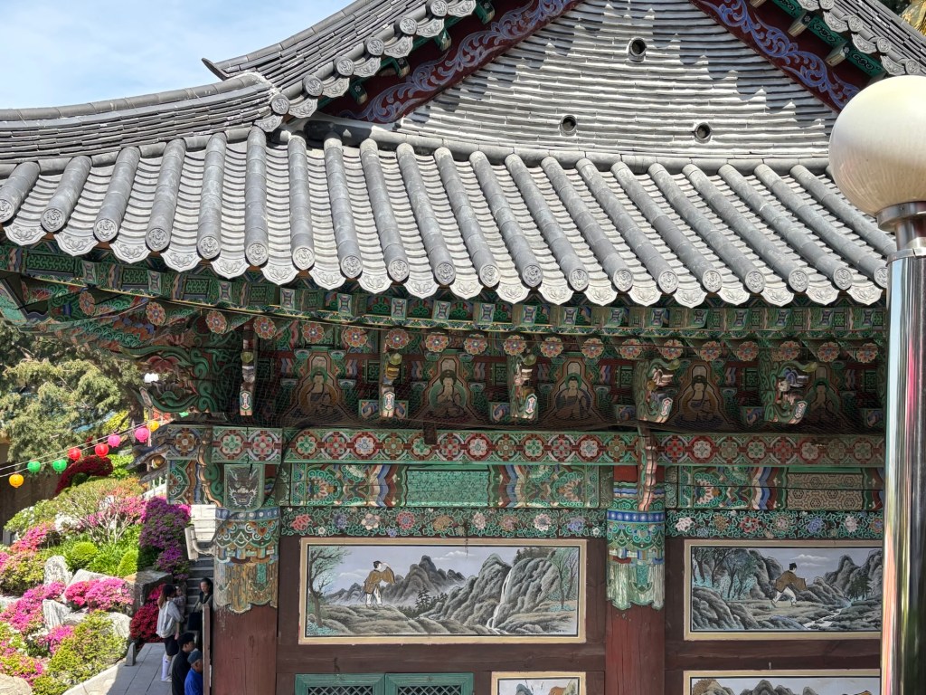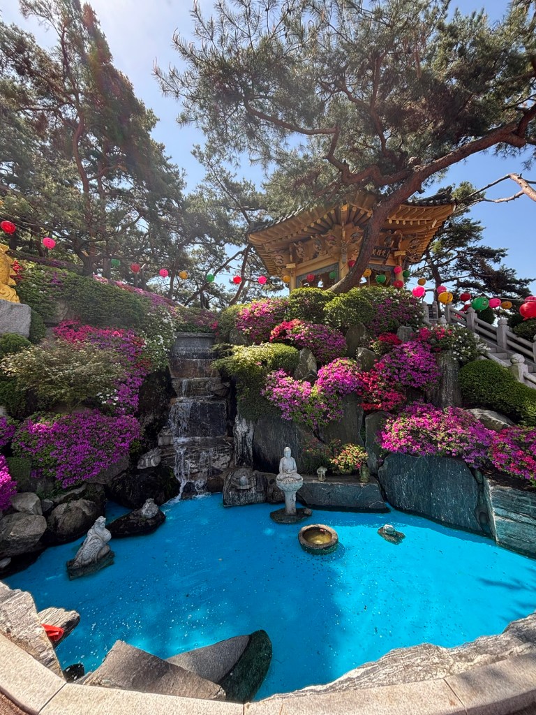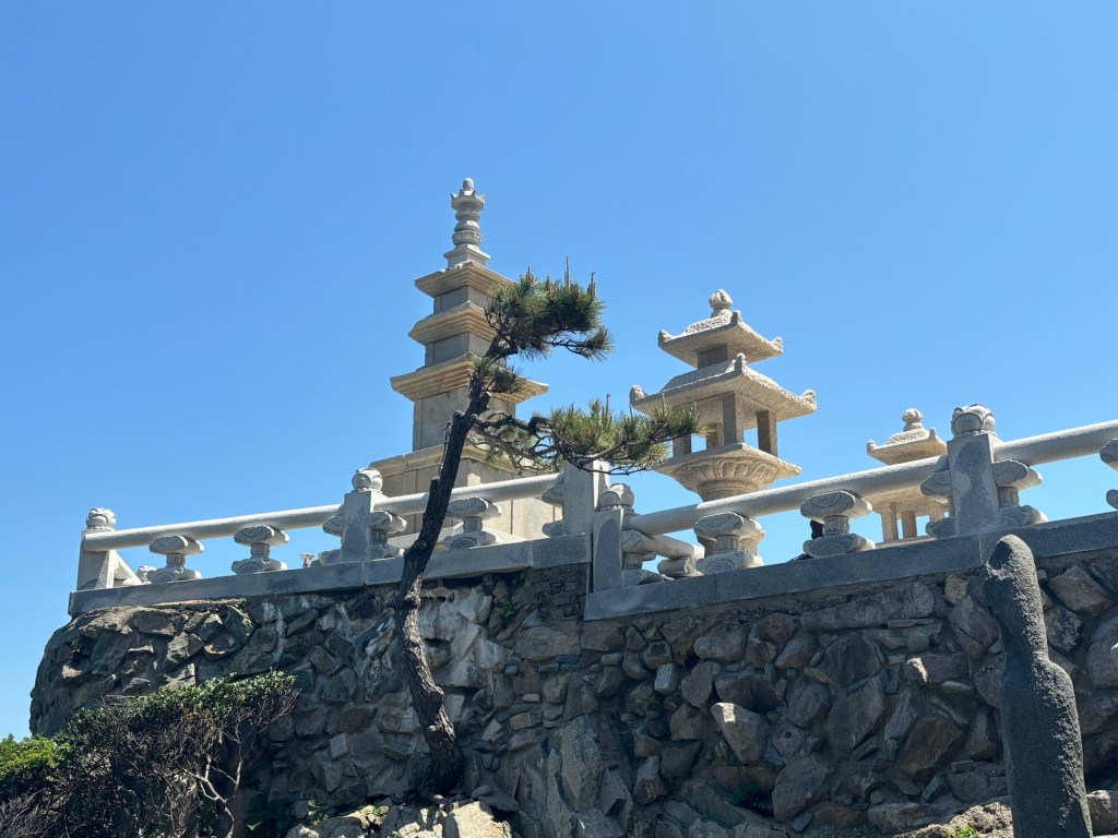 Gestern hat es ziemlich geregnet, deshalb haben wir den Tag für ein paar administrative Dinge genutzt, wie Bus und Bahntickets buchen und einen Besuch in einer Shopping Mall. Heute war das Wetter wieder schön und wir haben den Seokbulsa Tempel in den Bergen von Busan besucht. Es ist etwas schwierig den Tempel zu erreichen, da sollte eine Gondel hochfahren, aber die haben wir nicht gefunden. Also sind wir so weit wie möglich mit einem Taxi hochgefahren und den Rest gelaufen. Es war ziemlich steil, rutschig und nass, was ein kleines Problem für meinen Fuß war, aber wir waren vorsichtig und sehr langsam. Der Tempel ist wunderschön und ich bin froh, dass wir heute noch die Chance hatten ihn zu besuchen. Er ist teilweise in Stein gemeißelt und gebaut. Wunderschön!
