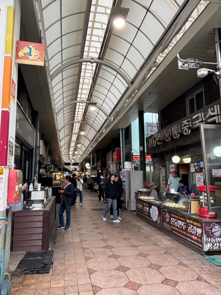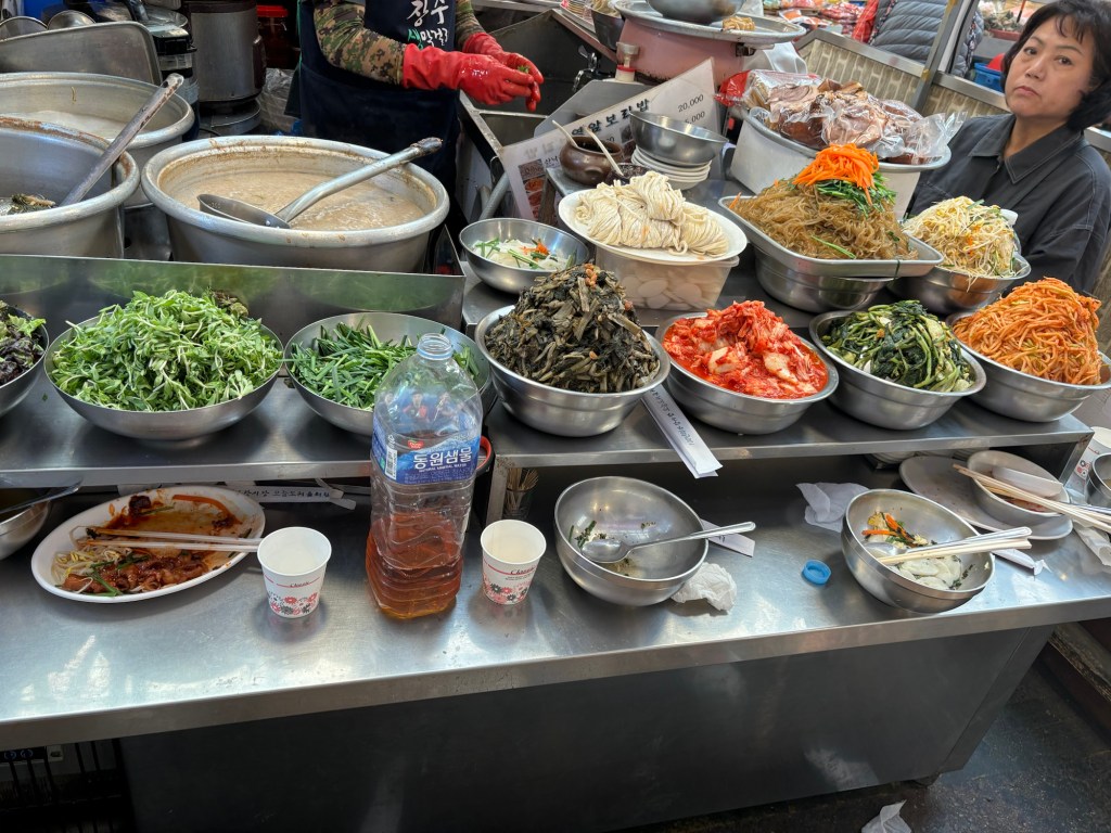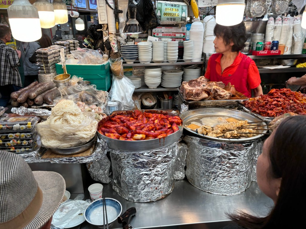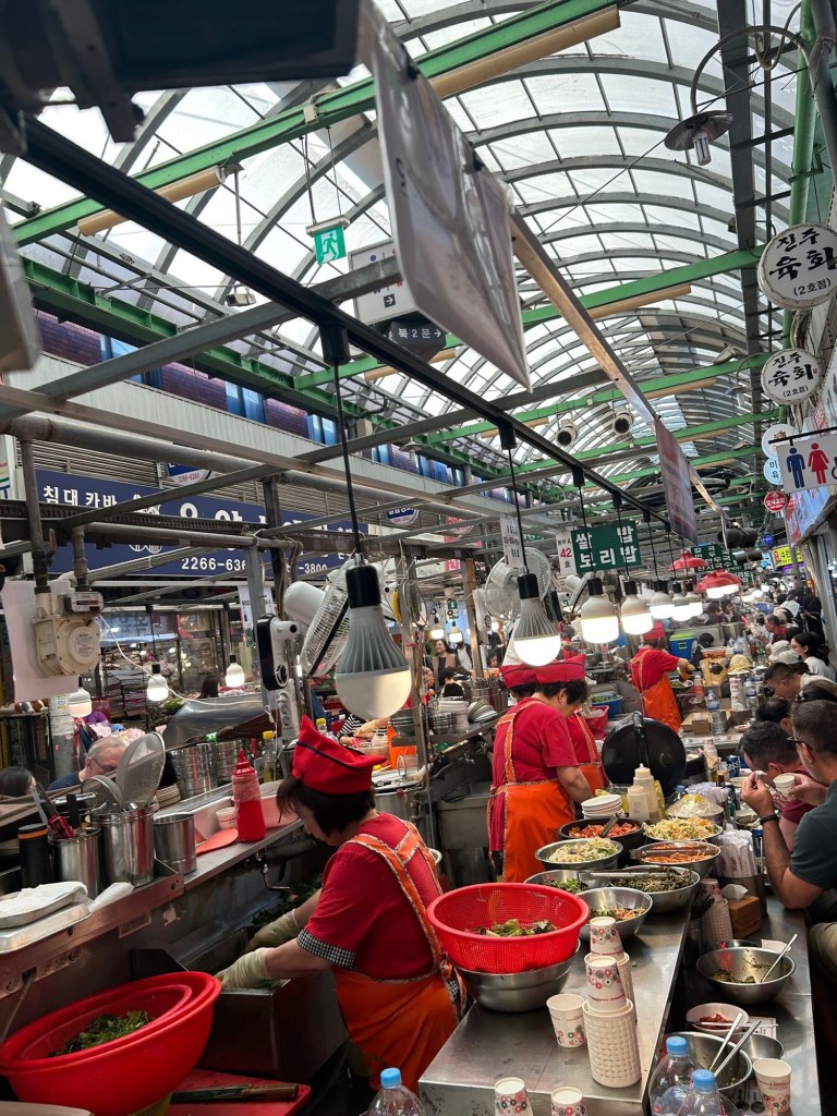 After the shrine we went to Gwangjang Market around the corner for lunch. It’s a famous you can buy everything market, but it became especially famous when Netflix featured a documentation about the food stalls.