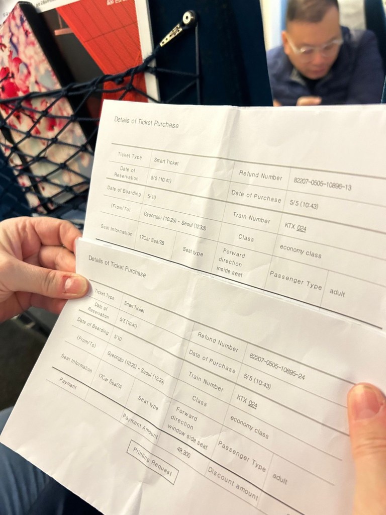 Ab Cheongsapo Station fährt dann ein schnellerer Zug, der auch überall hält. Damit man auch Zwischenstopps einlegen kann.