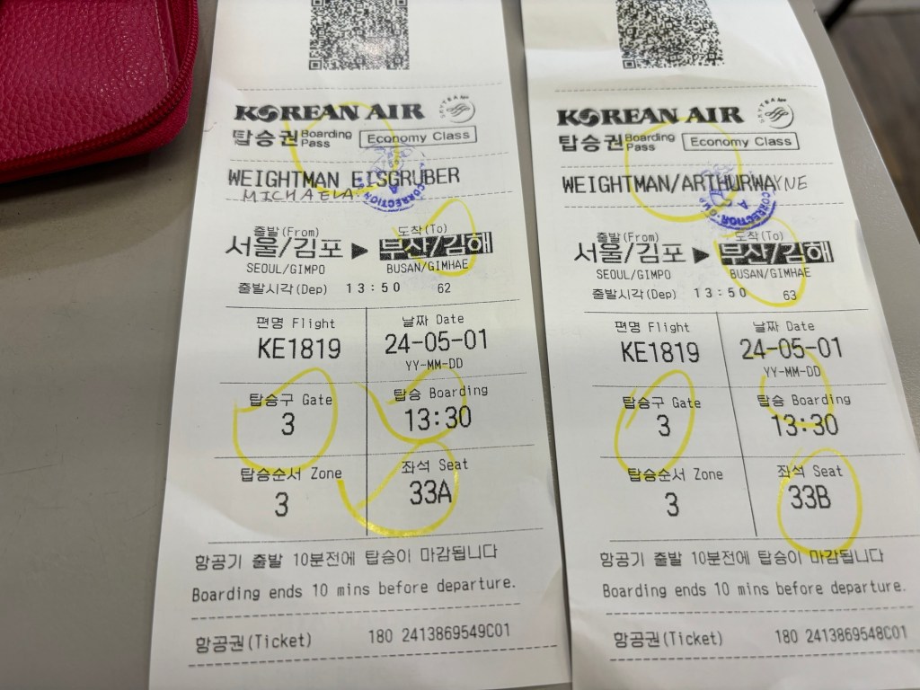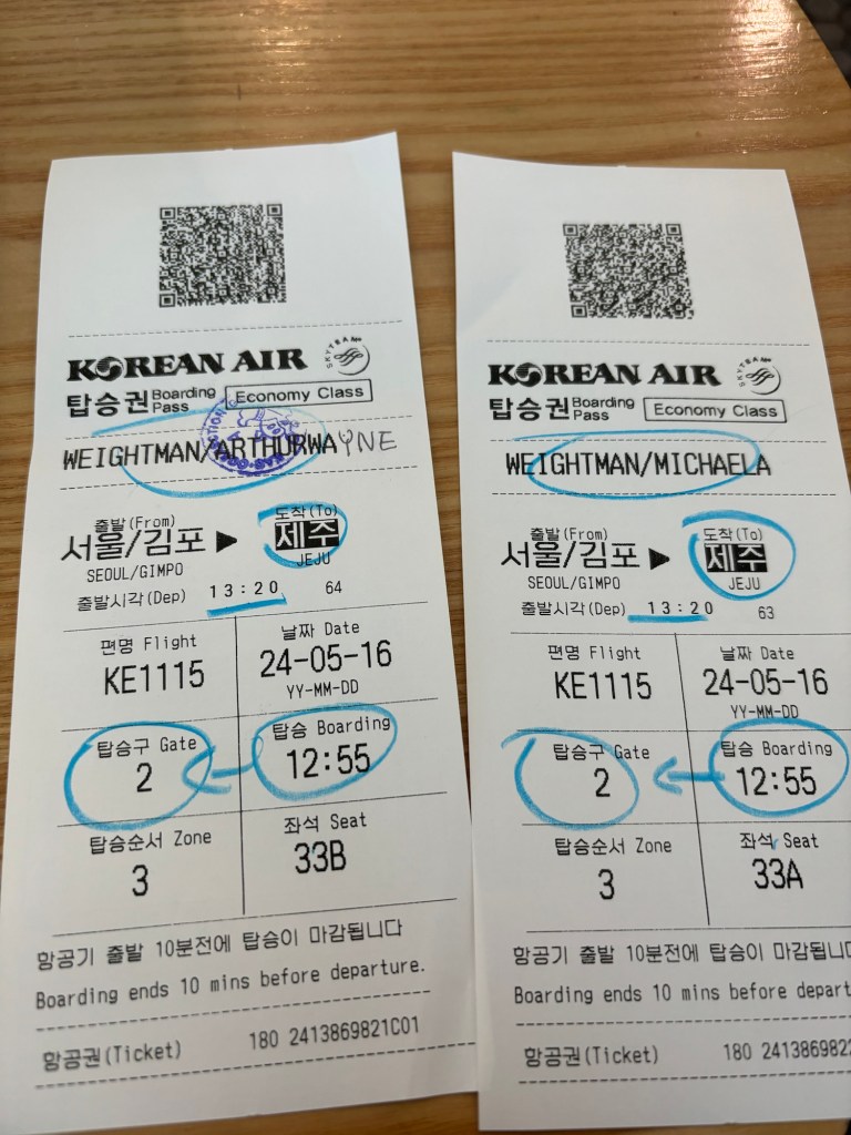 Wir haben eine Weile an der Immigration gebraucht und vom Flughafen ICN Incheon international zu GMP Gimpo innerkoreanisch zu Wechsel . Aber wir sind da und haben noch 3 Stunden bis Boarding.