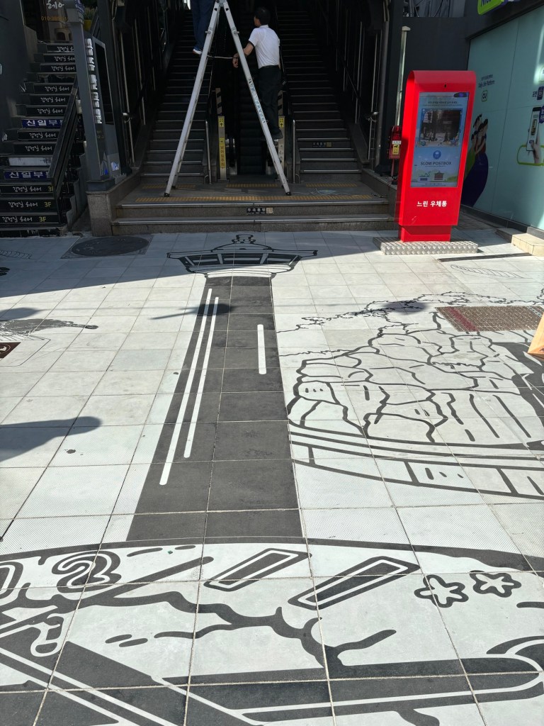It was raining today so before we did drive on, we went to a multimedia museum in an old bunker in Jeonju. Very impressing idea of use.