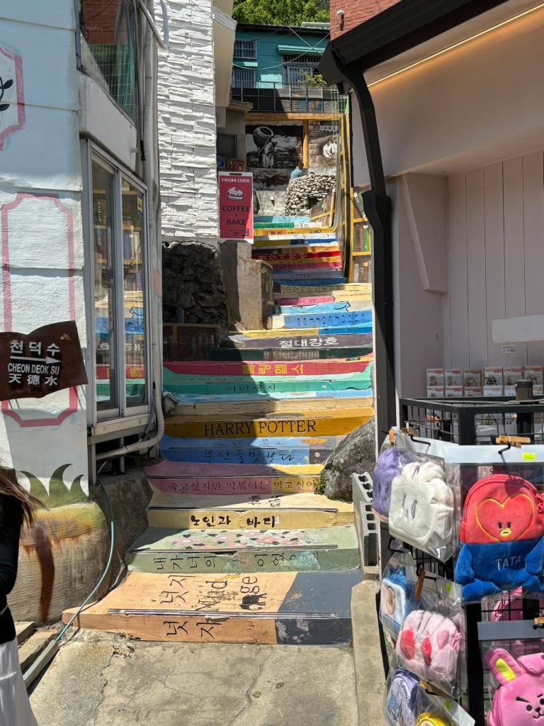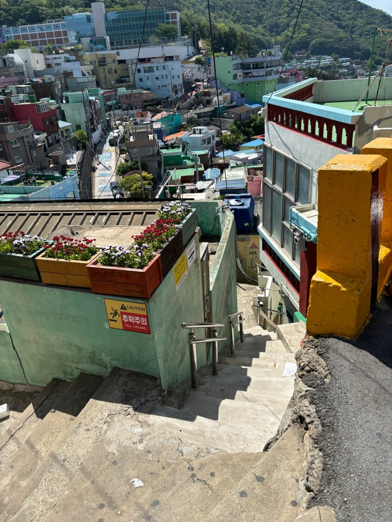 Gamcheon Village wurde während des Korea Krieges als Unterkunft für Flüchtlinge gebaut. Da Busan die einzige Stadt in Korea war, die nie von Nordkorea besetzt wurde. Auch heute noch leben viele Menschen im Dorf, deshalb darf man nicht überall rumlaufen um sie nicht zu stören. trotzdem ist es schon eine tolle Sehenswürdigkeit und das Bergsteigen wert. 😂