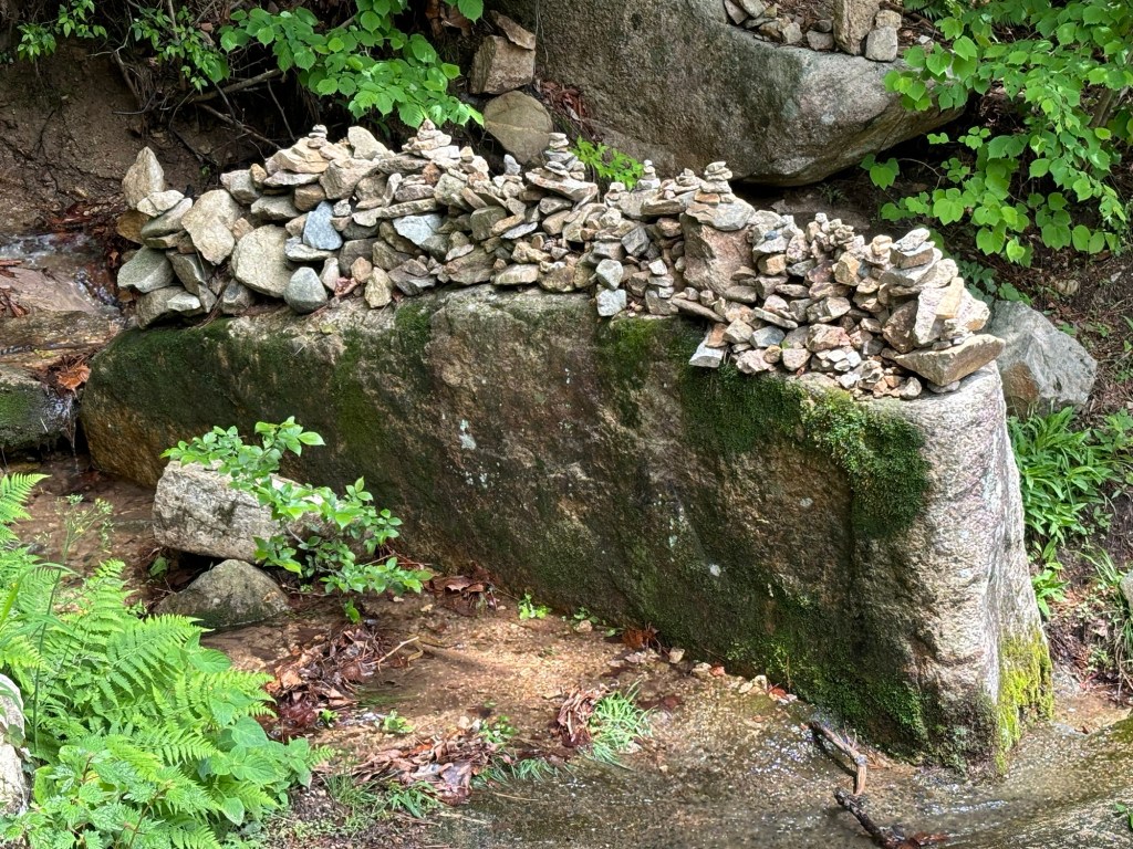 On the way up/down you’ll see these stone builds everywhere. You are supposed to add a stone on the top. Arthur’s stone on the top. 😂