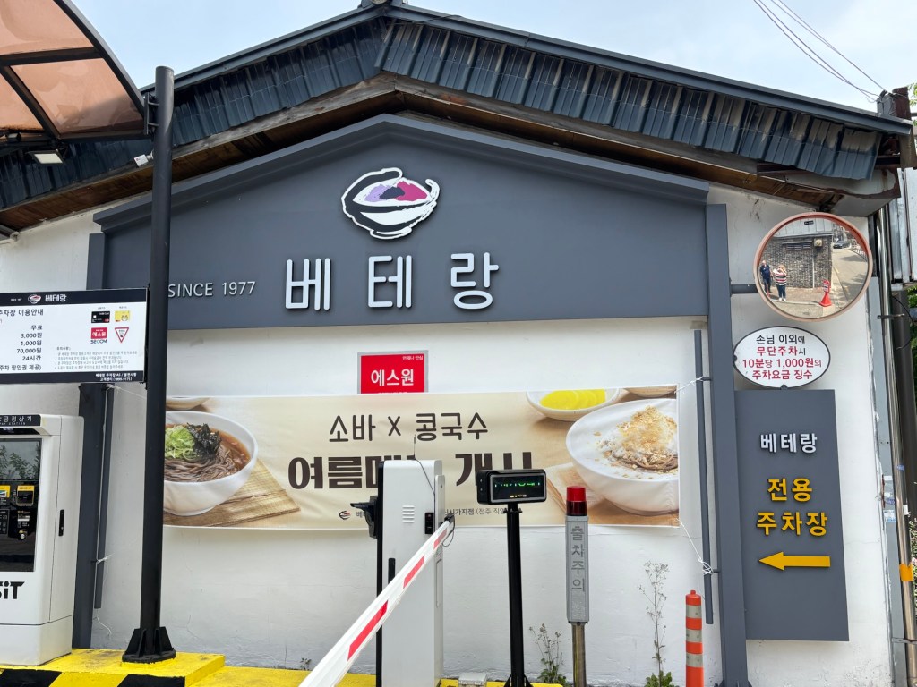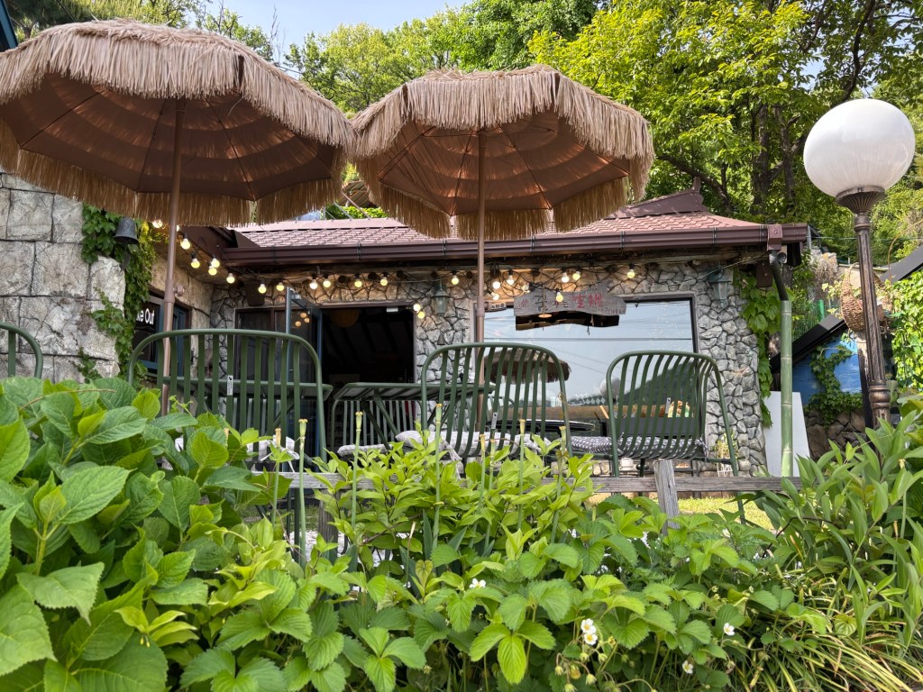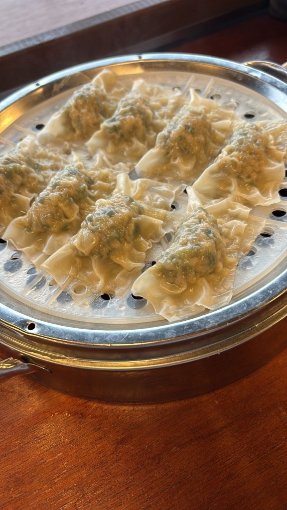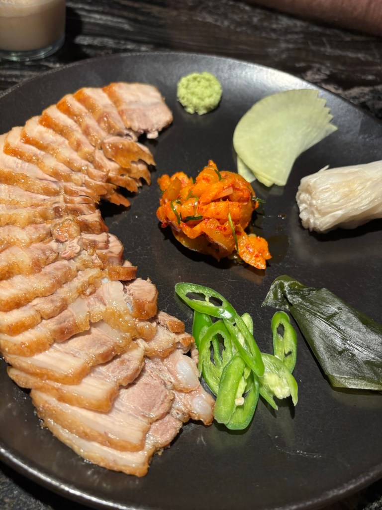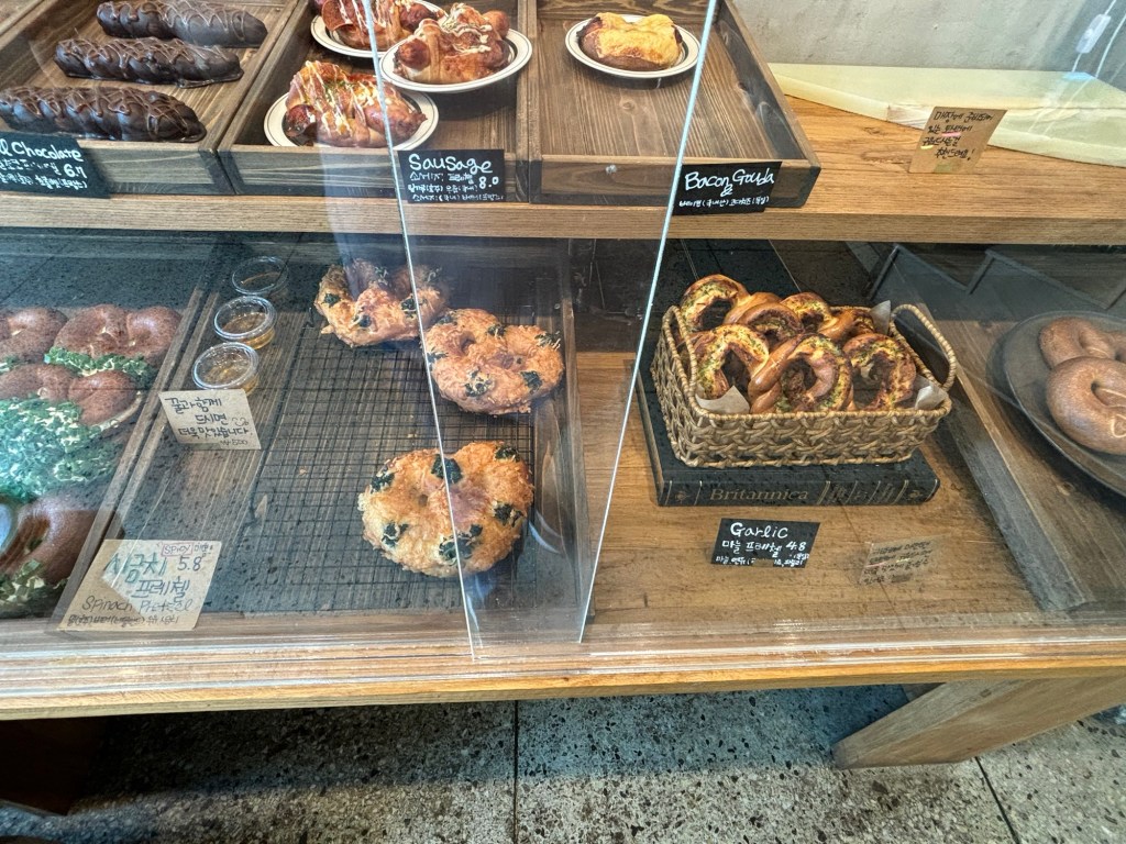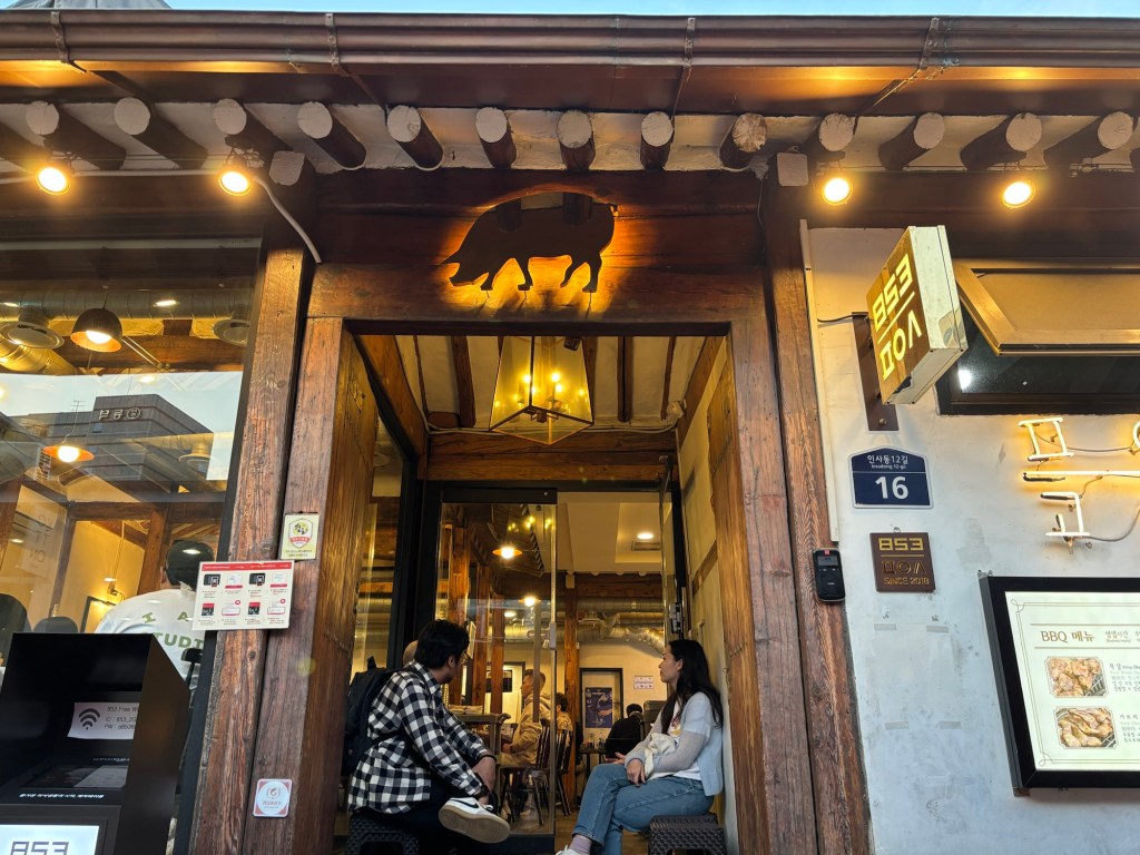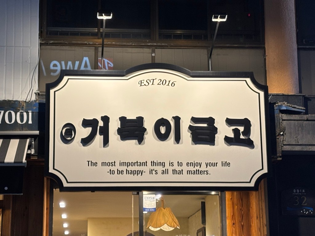 The restaurant was full of Koreans. So we thought we should give it a try. You even had to take your shoes off before entering the restaurant. Only five options on the menu. All soybean soup with something. We chose option 1 – soy bean soup with black sesame. 2 would have been with oil and egg yolk, 3 with perilla seeds and we already figured out we don’t like them. To be fair, it wasn’t inedible, but it also wasn’t that good that we would order it again… as lunch – breakfast maybe.. or rather not again. 😂 It was just a sweet taste and a glibbery, gluey consistency we’re not used to. But I am glad we tried it.