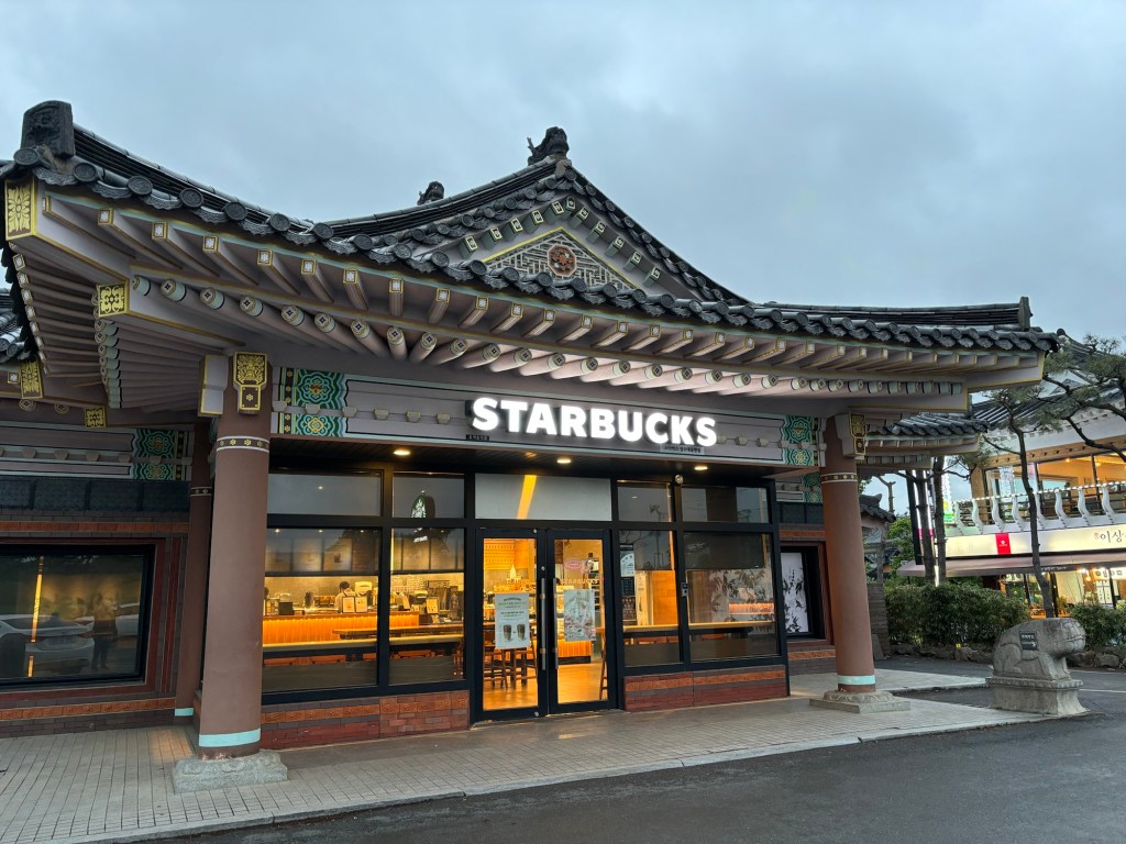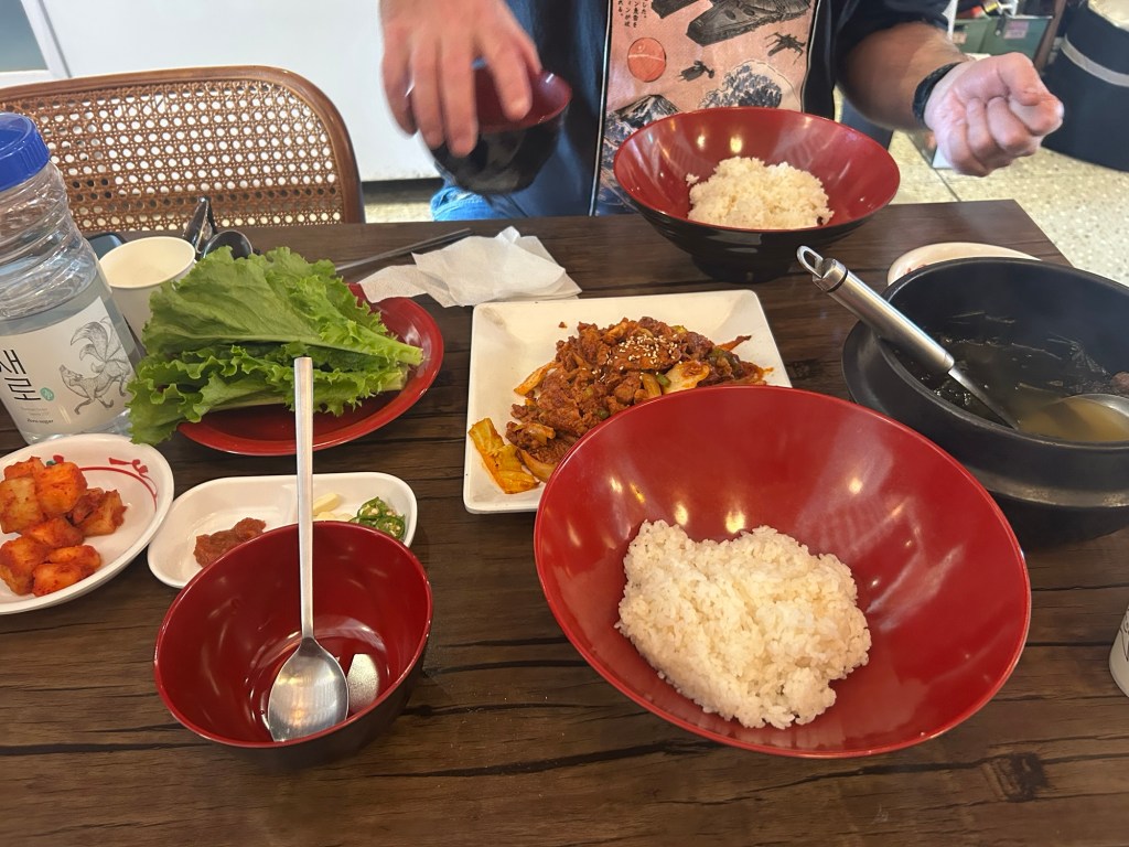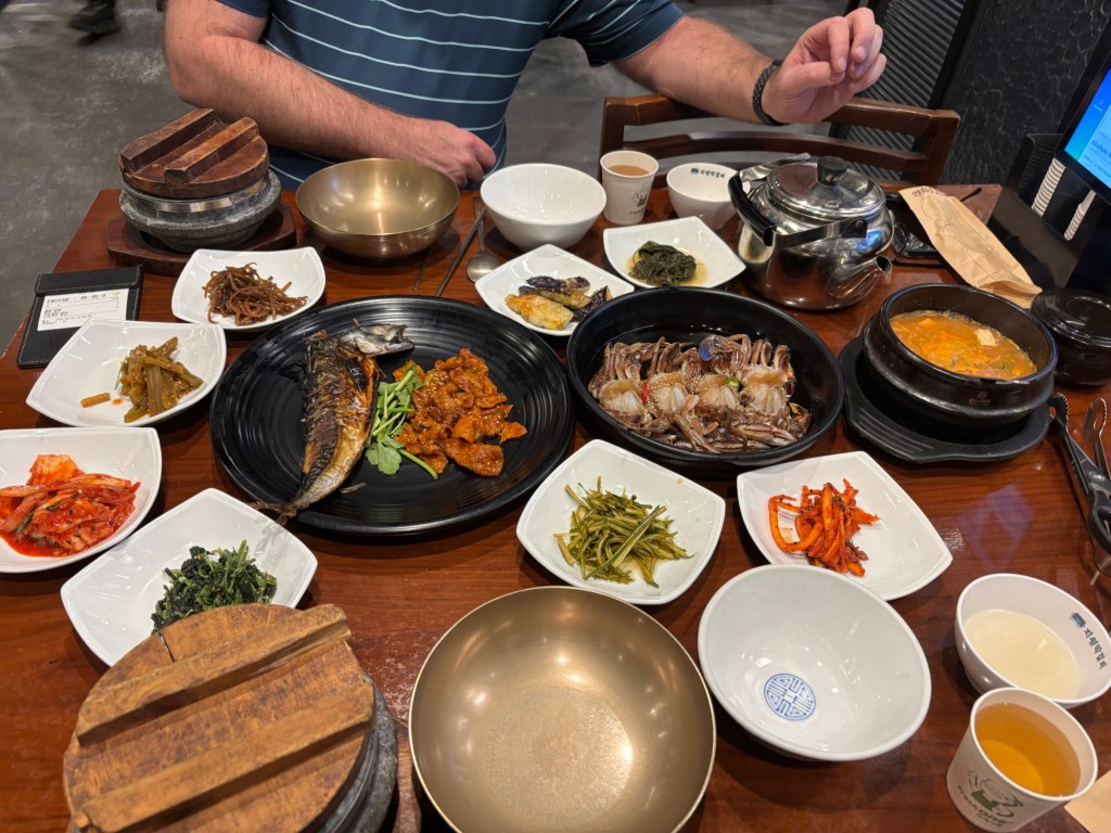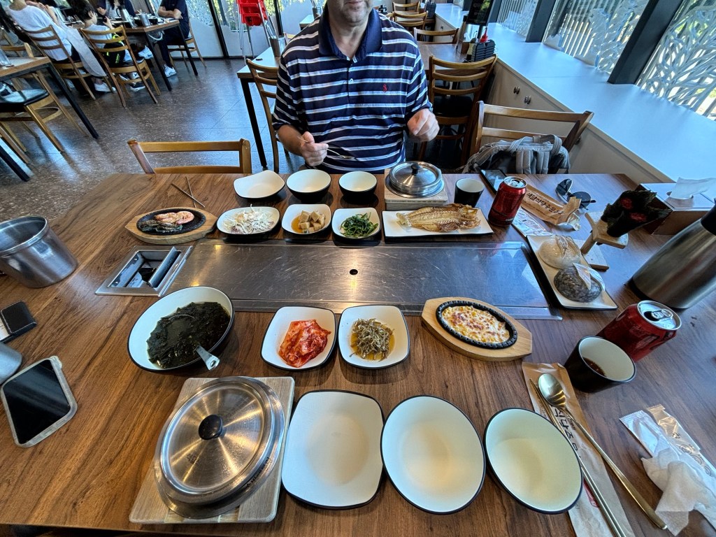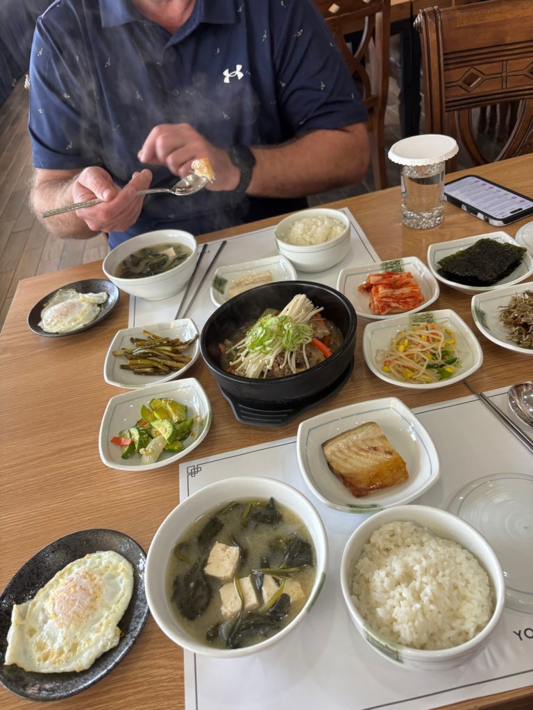 Wir haben auch traditionelles koreanisches Frühstück bekommen. Sehr lecker, aber zu viel und ich muss zu Starbucks für einen großen Kaffee. 😂