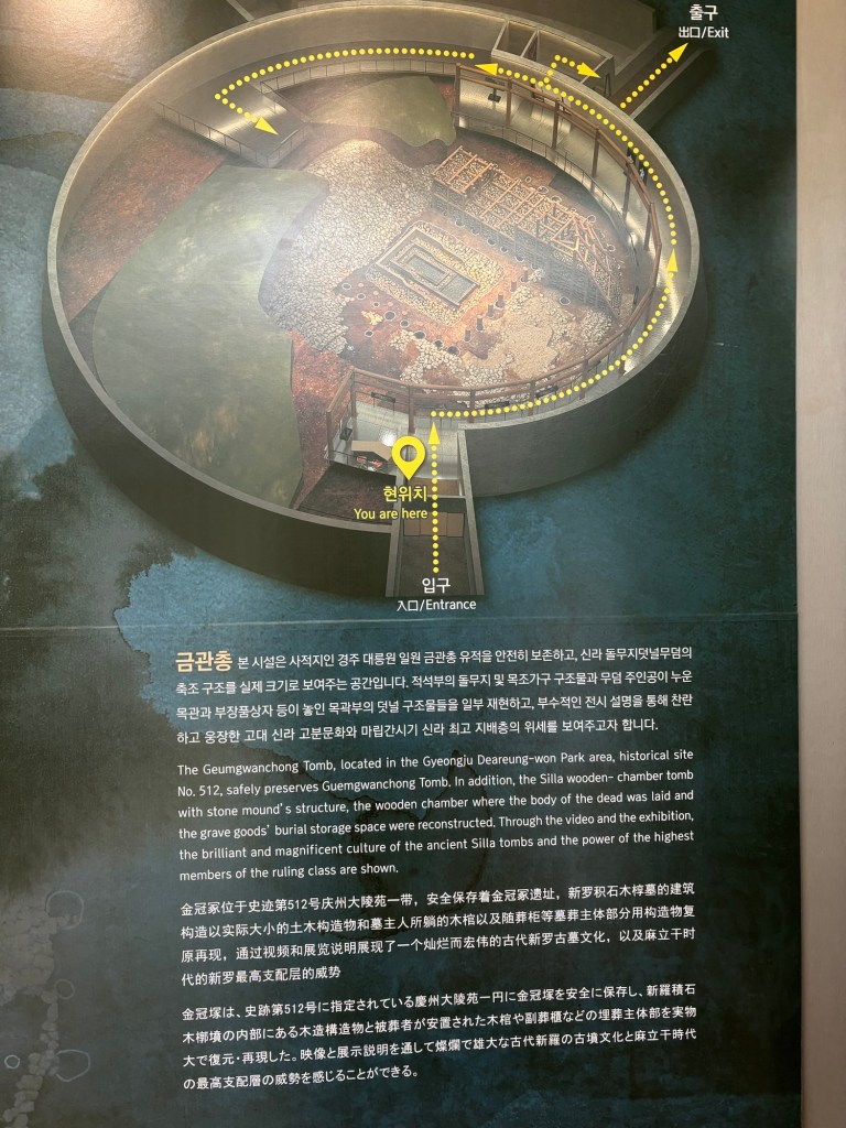 Cheonmachong, dieses Grab hat man für Touristen zum Betreten geöffnet und fand oben gezeigte Reliquien. Ursprünglich wollten sie das große Grab mit 2 Hügeln öffnen, dazu war man aber 1920 nicht fähig. Wer weiß was dort und in den restlichen 11 Gräbern noch versteckt ist. 🤔🤔