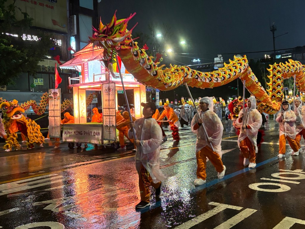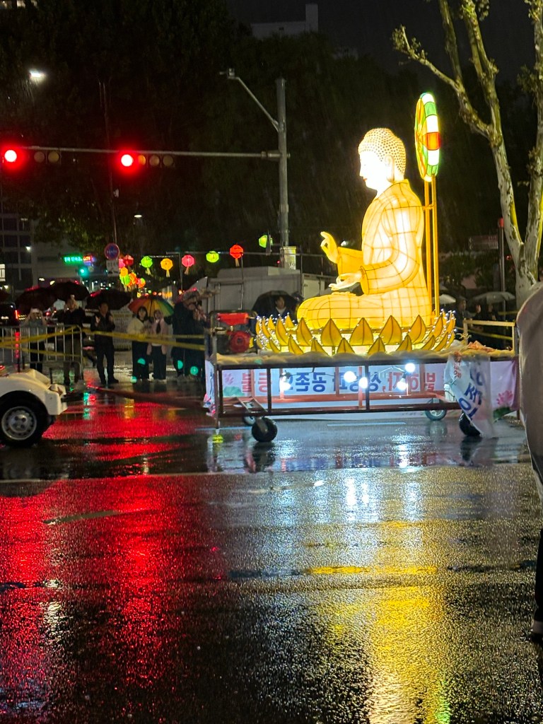 Leider hat es den ganzen Tag und Abend geregnet. Wirklich Schade! Aber die Leute hier sind so stolz und freuen sich über Buddhas Geburtstag, das die Parade trotzdem wunderschön war.