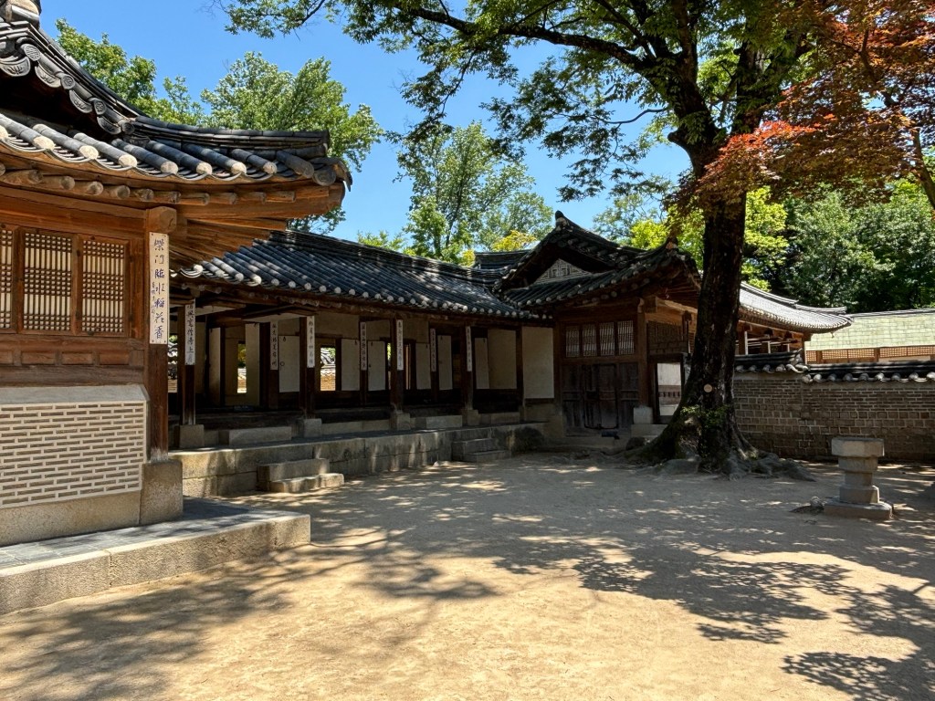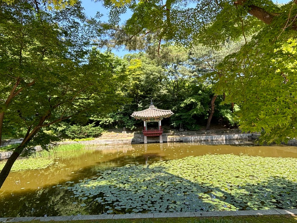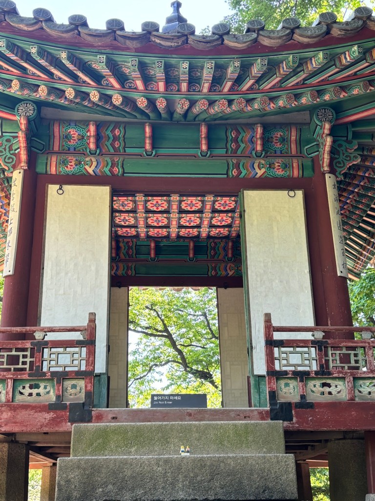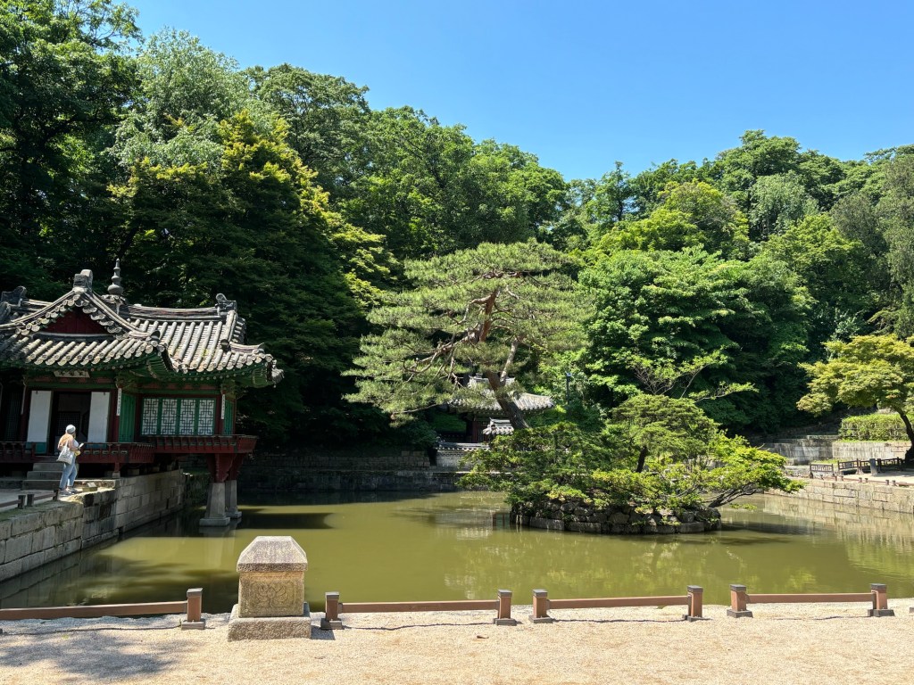 Es ist ein Palast wie die beiden Vorherigen. Für uns schauen sie gleich aus, aber dieser Palast hat einen geheimen Garten., der den Palast zum Lieblingspalast vieler Joseon Könige machte. Du kommst nur von den beiden Palästen Changdeokgung und Changgyeonggung in den Garten. Der Garten ist uneinsehbar in einem kleinen Tal. Er wurde wunderbar in die Natur eingebettet. Die Besucherzahlen sind limitiert und man muss an einer Tour teilnehmen.