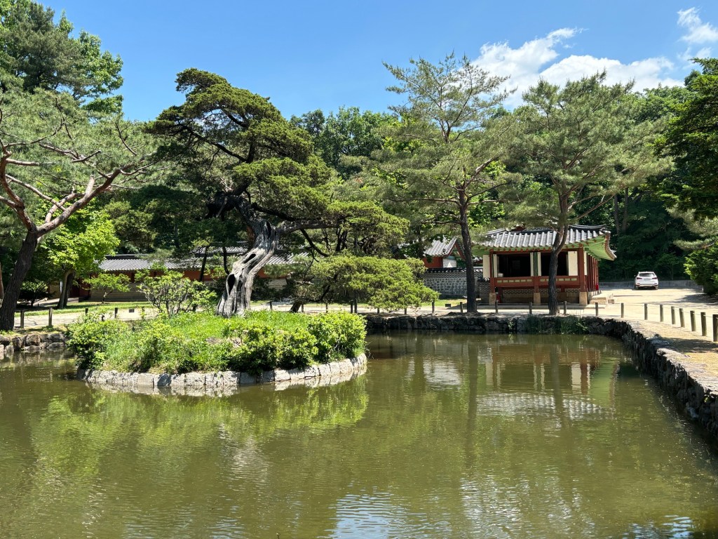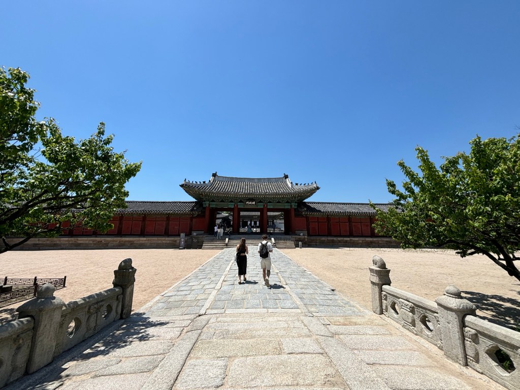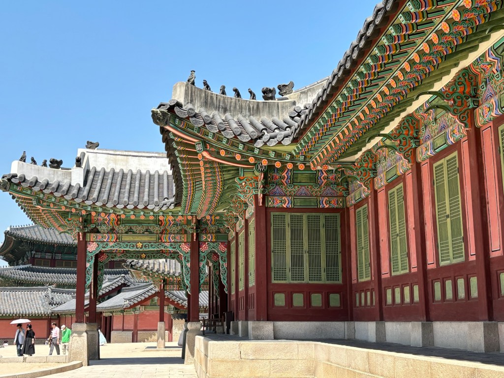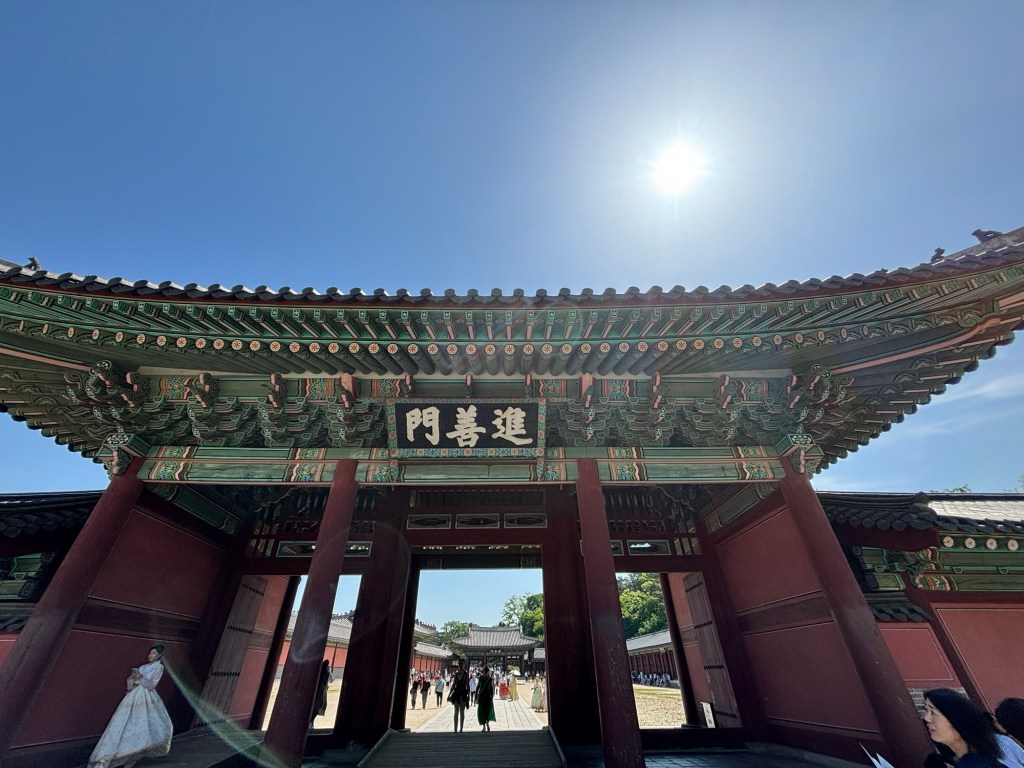 Es ist ein Palast wie die beiden Vorherigen. Für uns schauen sie gleich aus, aber dieser Palast hat einen geheimen Garten., der den Palast zum Lieblingspalast vieler Joseon Könige machte. Du kommst nur von den beiden Palästen Changdeokgung und Changgyeonggung in den Garten. Der Garten ist uneinsehbar in einem kleinen Tal. Er wurde wunderbar in die Natur eingebettet. Die Besucherzahlen sind limitiert und man muss an einer Tour teilnehmen.