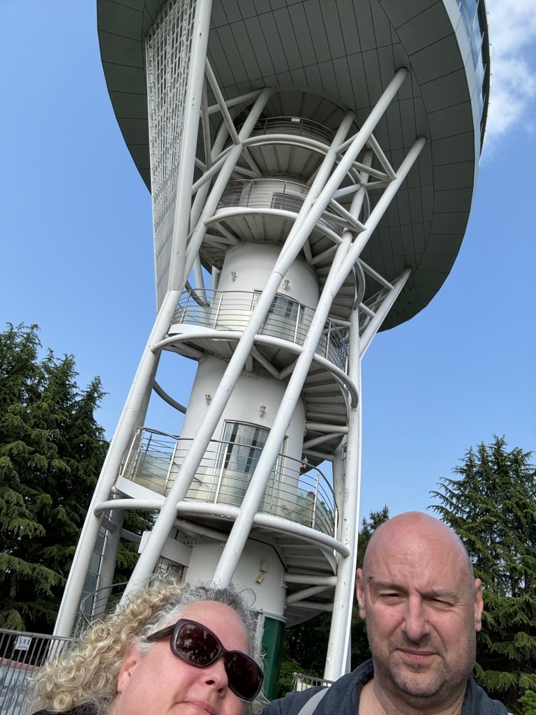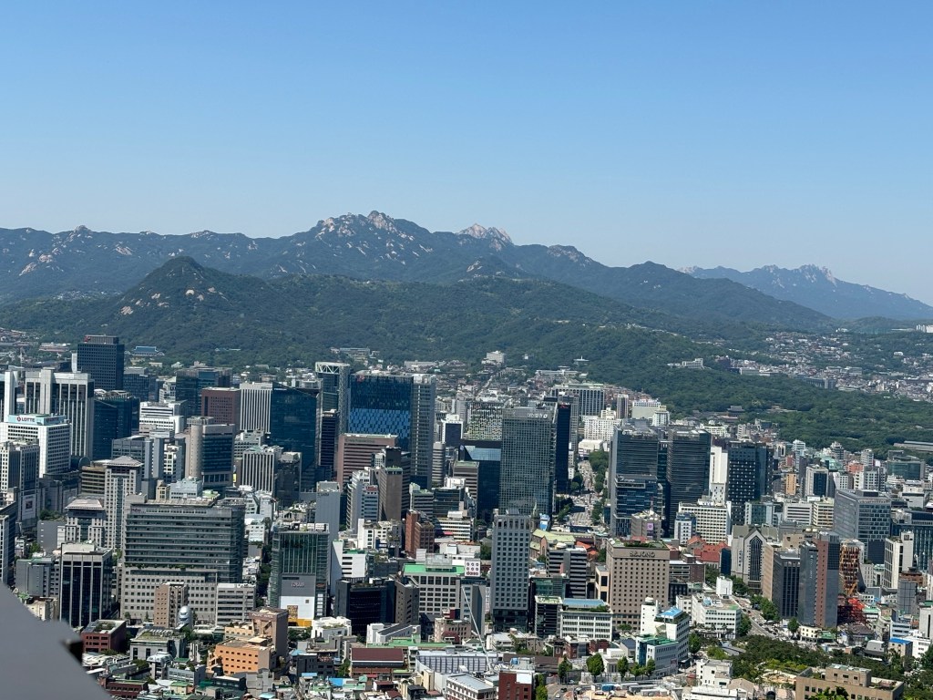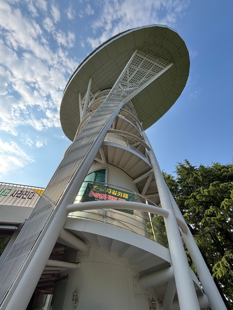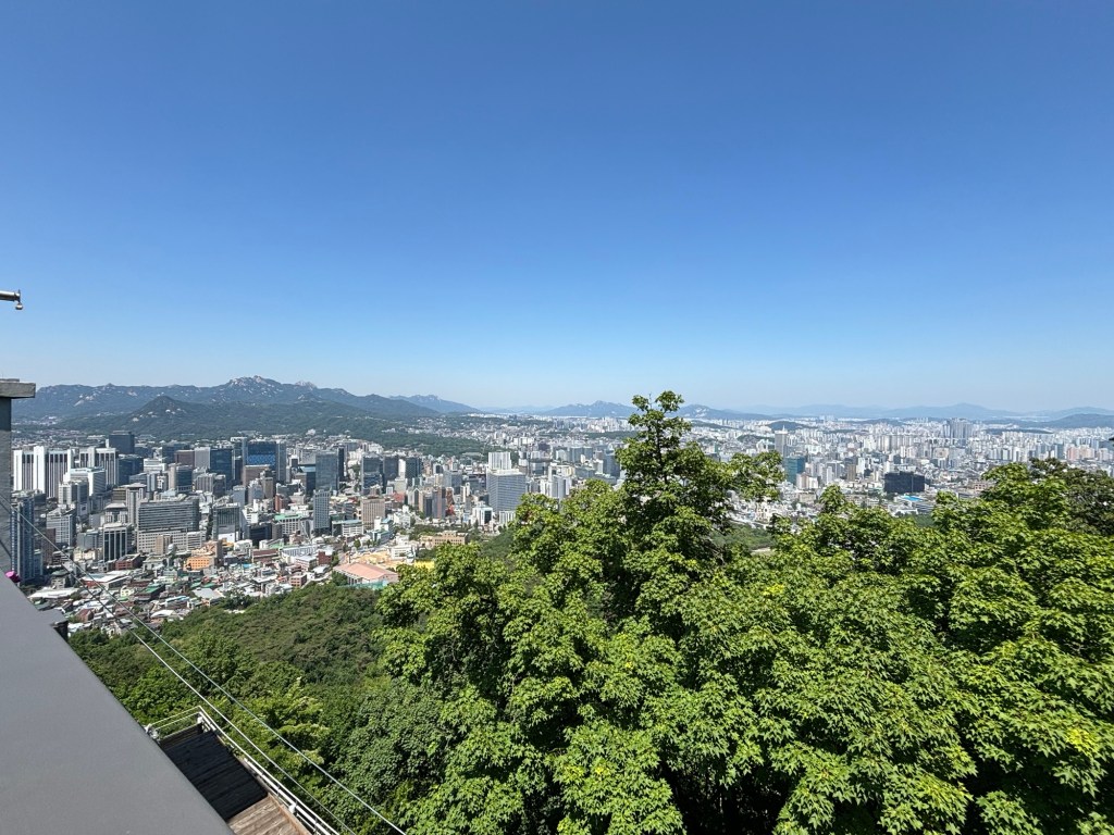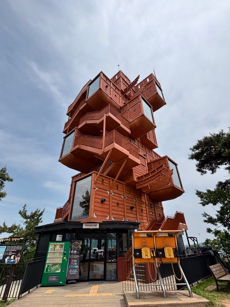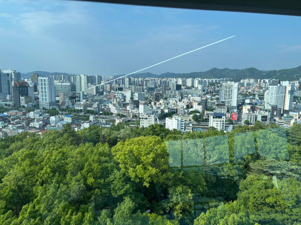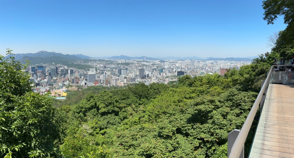 Koreaner lieben Wanderungen. Wir sind den Berg hochgelaufen und haben oben herausgefunden, dass man die 6 Stockwerke zur Aussichtsplattform auch hinaufsteigen muss. Nix Lift. 😂