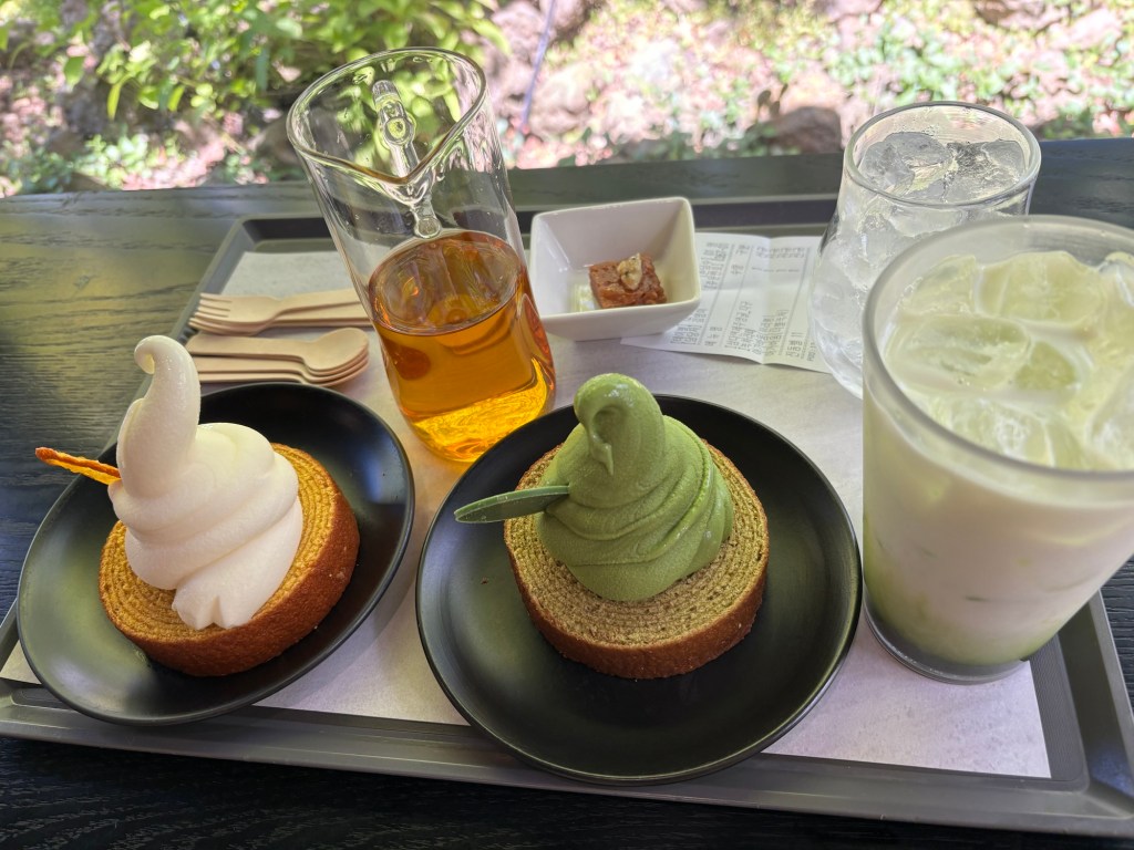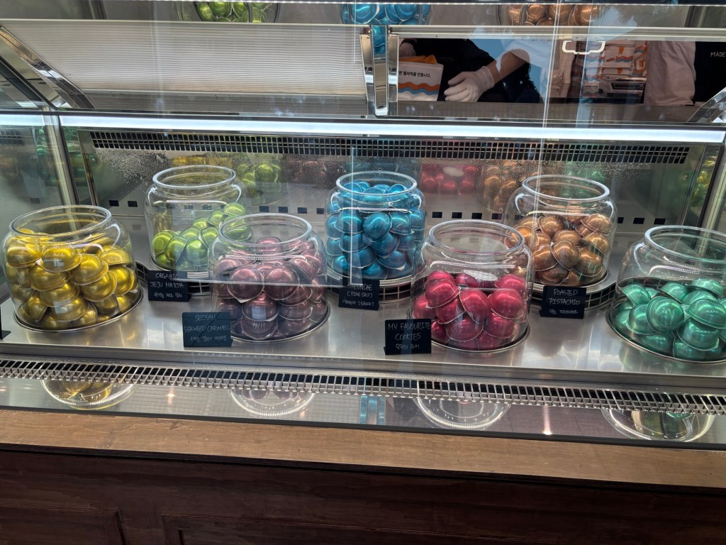 We chose seosan seaweed caramel, roasted pistachios, my favorite cookie and almond mint chocolate chip.