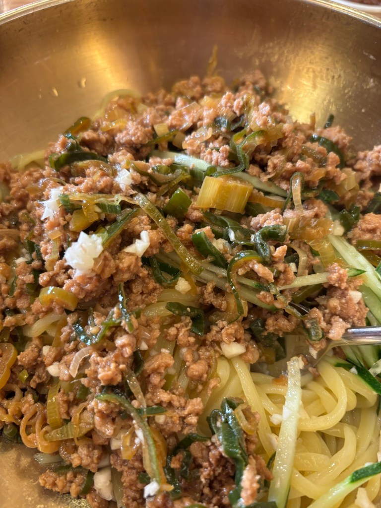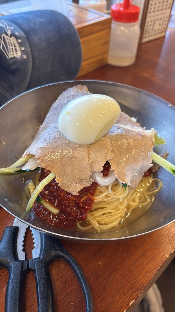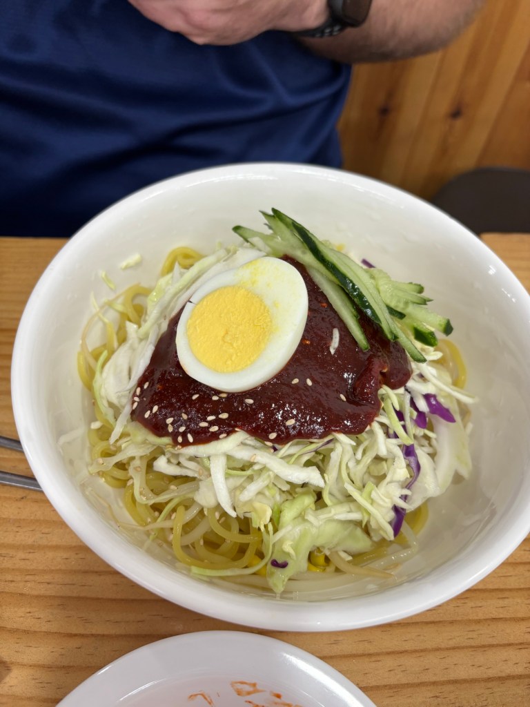 Only a few things on the menuKalguksuJjolmyeon – cold chewy noodles with hot sauce