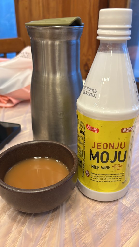 Jeonju has its own Makgeolli/ rice wine called Moju and is is delicious. It is basically rice wine with different herbs and spices and it tastes like liquid Christmas.