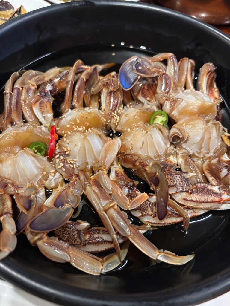 Banchan 🥰Tiny marinated 🦀- they were delicious Traditional Jeonju BibimbapTraditional Jeonju Bibimbap with raw beef