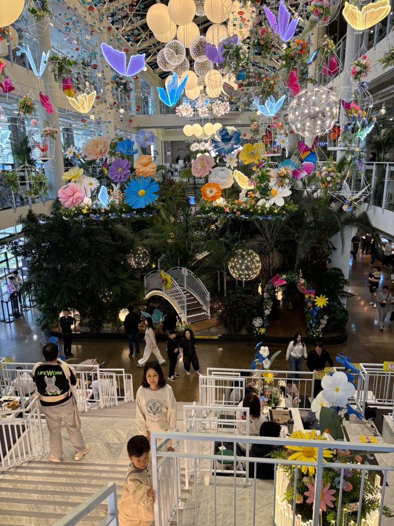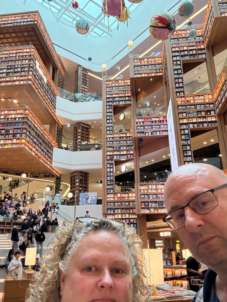 Starfield ist ein Einkaufszentrum, aber neben dem Shoppen geht man dort zur Bücherei. Die ist mehr als 3 Stockwerke hoch und wir haben keine Ahnung wie man die Bücher von den hohen Regalen bekommt, schaut aber gut aus. 😂