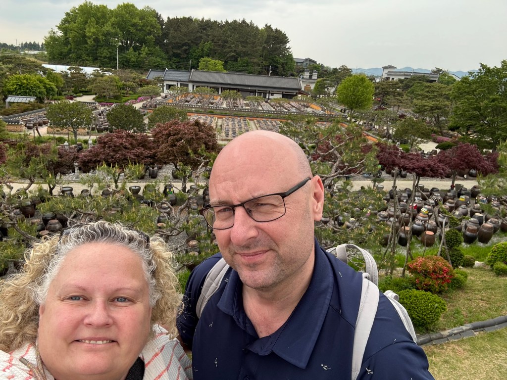 Jetzt sind wir hier in Jeonju und blicken von unserem Hotelzimmer auf das Hanok village mit den traditionellen Koreanischen Häuschen.