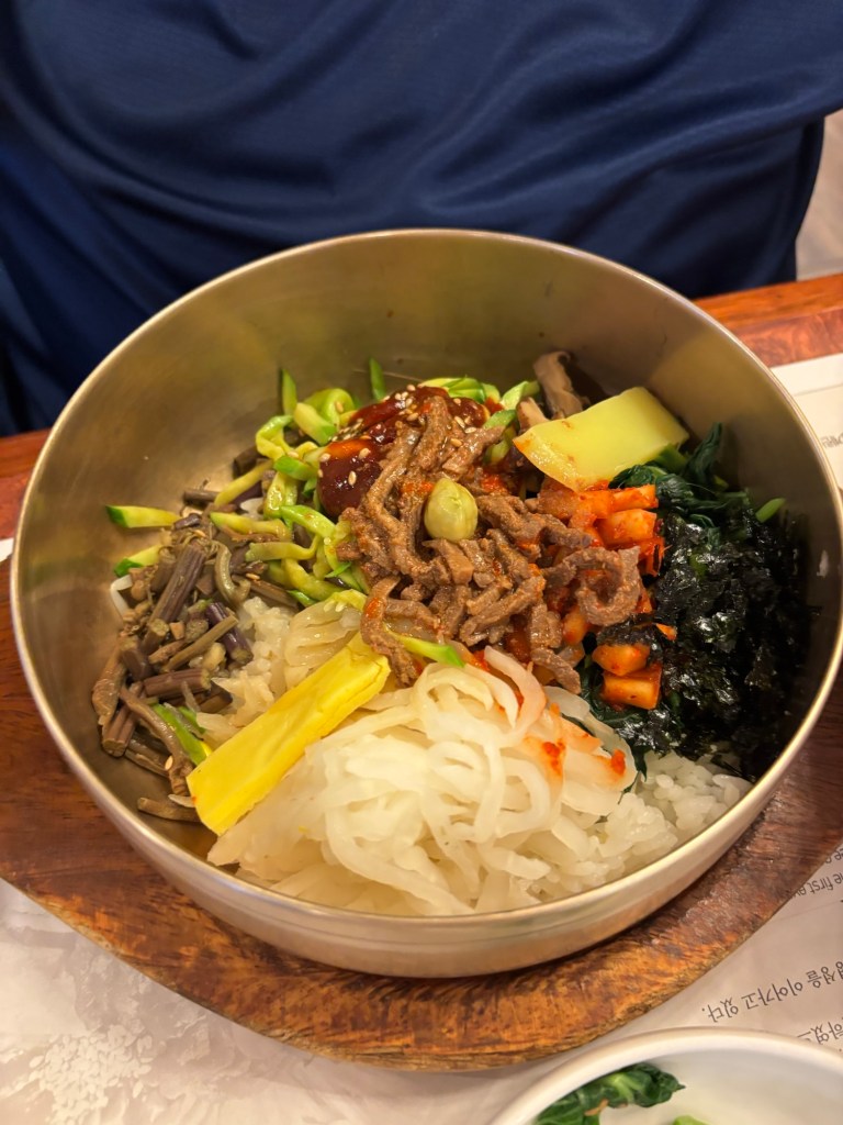 Jeonju ist die Geburtsstätte von Bibimbap, einem Gericht basierend auf Reis mit Gemüse und Fleisch und Gochujang. Bibimbap übersetzt sich zu Misch (Bibim) und Reis (Bap) , also weiß man was man tun muss. 😂