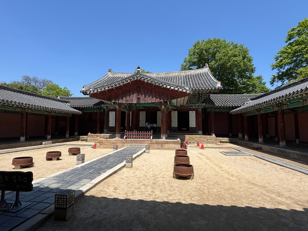 Jeongjeon, der Hauptschrein, beherbergt 19 Seelenkammern für 49 Seelen. 19 Türen für 19 Seelen von Königen und deren 30 Königinnen.