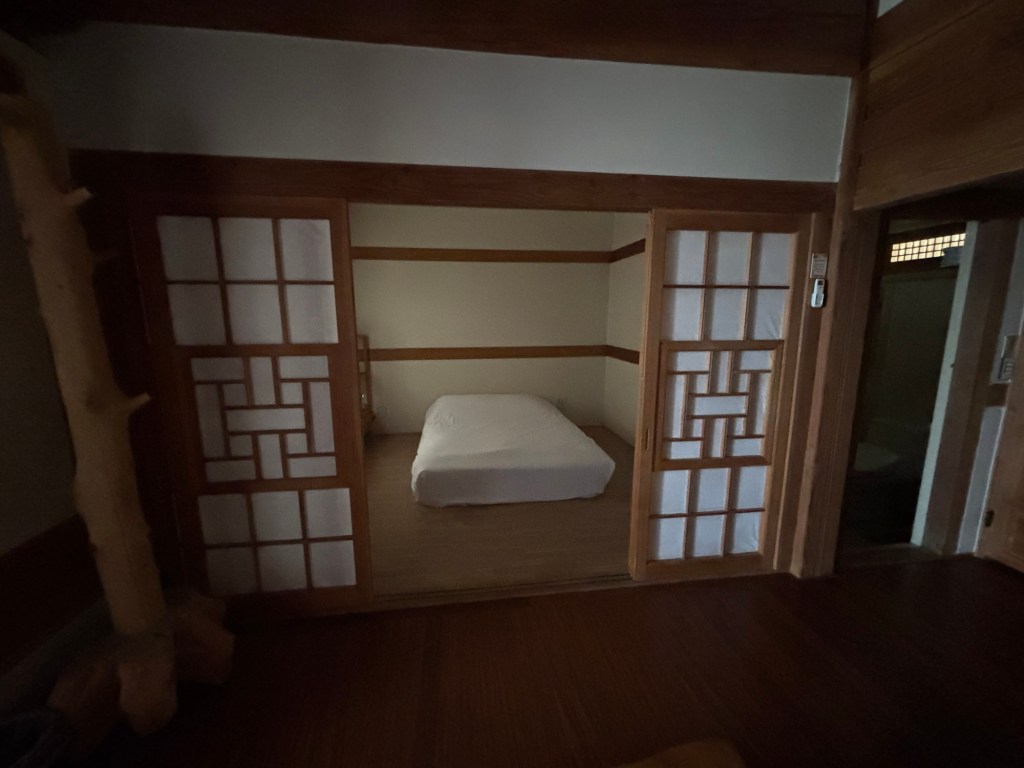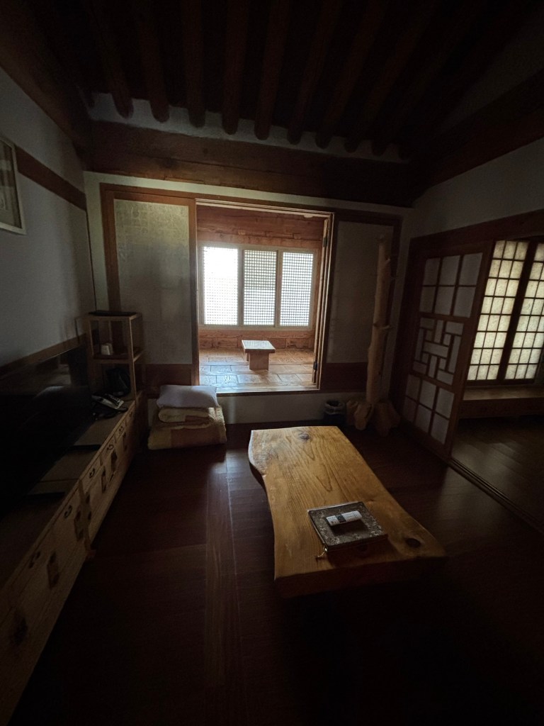 We did book a lovely Hanok stay for 3 nights. Unlike Japan where we did sleep on tatami mats in a traditional Ryokan, we could book the Hanok with a mattress. We figured out in Japan we‘re not made for sleeping on the floor, but the mattress is comfy. 😂Only the underfloor heating was killing us last night. You could feel the heat of the floor through the mattress and it was way too hot for us. It’s 25 degrees here and we don’t need heating. Thank god I found the off button in the morning.