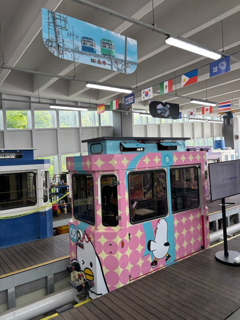 Es ist ein Zug, der am Wasser entlang fährt von Mipo zu Cheongsapo Station. Man bekommt seine eigene Kapsel, das ist nett, aber es heißt auch man sollte früh da sein, denn es ist schnell ausverkauft. 😬
