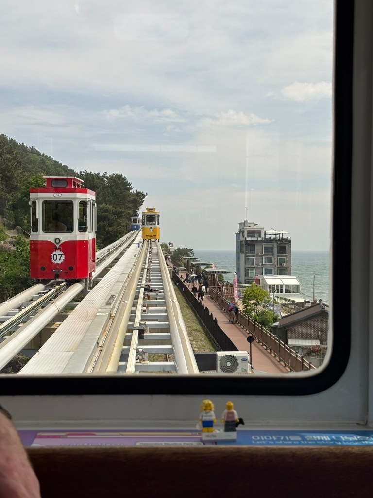 It’s a beach train which leaves at Mipo station and goes all the way to Cheongsapo Station along the water. You’ll get your own capsule, that’s nice, but it also means be there early or it’s sold out. 😬