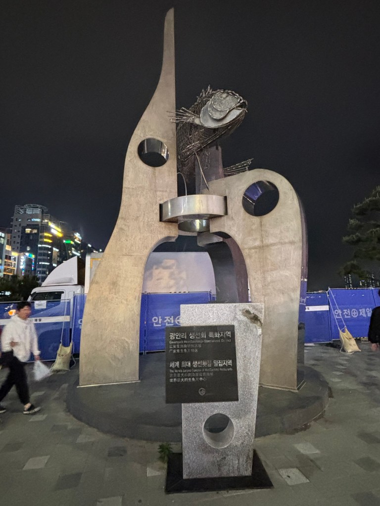 Fist day in Busan we did explore the closer area to our hotel. Very close is Jagalchi Fishmarket. you choose the fish or seafood you would like to eat on ground floor and then go up to the second floor to the restaurants. They’ll prepare it for you. Prepare! Not cook! Speciality is to eat these things raw. We were not that brave 😂